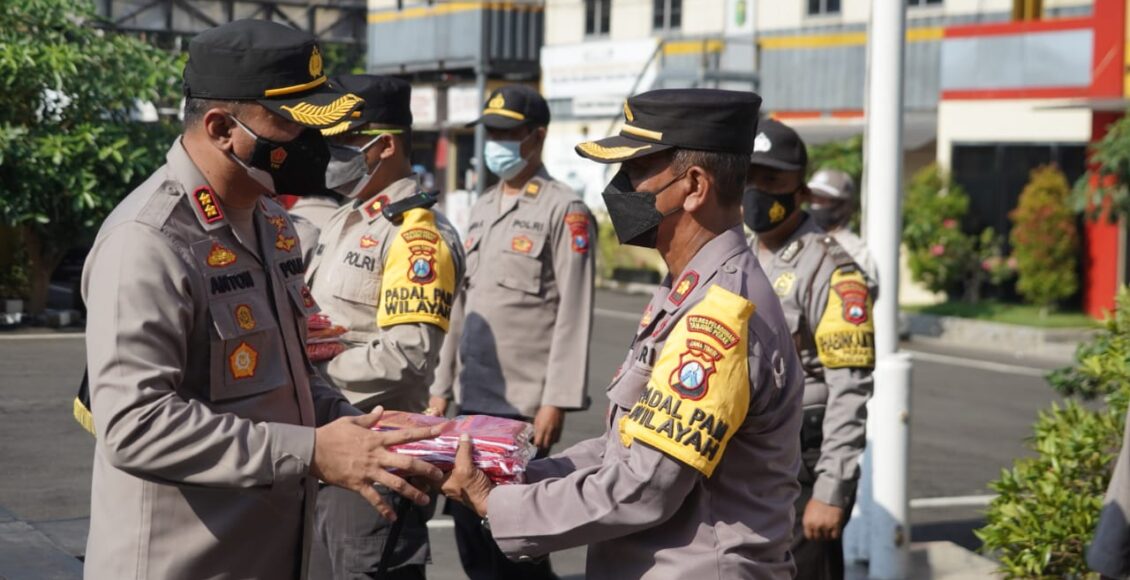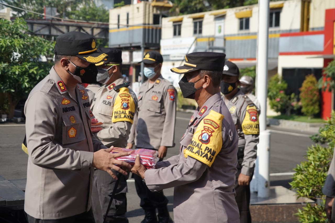 Kapolres Tanjung Perak Serahkan Bantuan 3.000 Bendera Merah Putih & Sembako Kepada Kapolsek Jajaran Serta Babinkamtibmas