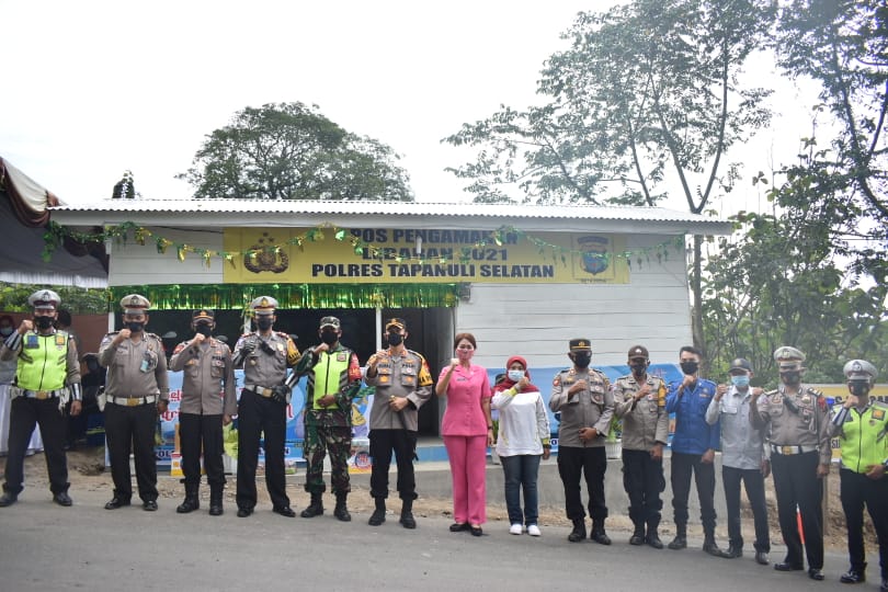 Tapanuli Selatan,IKAGAWANEWS.ID – Kepala Kepolisian Resort (Kapolres) Tapanuli Selatan AKBP ROMAN SMARADHANA ELHAJ, S.H., S.I.K., M.H. didampingi oleh Ibu Ketua Bhayangkari Cabang Tapanuli Selatan NY. PEPIN ROMAN ELHAJ Beserta Rombongan Melaksanakan Kegiatan Pengecekan Pos Pengamanan (Pospam) dalam rangka Operasi Ketupat Toba Tahun 2021 di Wilayah Hukum Polres Tapanuli Selatan, Pos Pengamanan (Pospam) Lebaran 2021 Batu Jomba Polres Tapanuli Selatan yang berada di Jalan Lintas Sipirok – Tarutung Dusun Bulu Payung Desa Luat Lombang Kec. Sipirok Kab. Tapanuli Selatan, Minggu 09 Mei 2021.