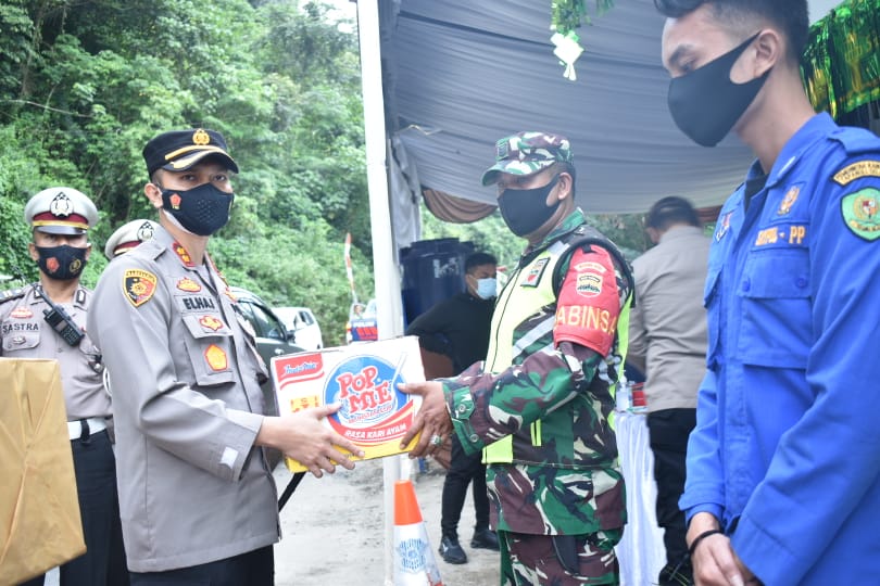 Tapanuli Selatan,IKAGAWANEWS.ID – Kepala Kepolisian Resort (Kapolres) Tapanuli Selatan AKBP ROMAN SMARADHANA ELHAJ, S.H., S.I.K., M.H. didampingi oleh Ibu Ketua Bhayangkari Cabang Tapanuli Selatan NY. PEPIN ROMAN ELHAJ Beserta Rombongan Melaksanakan Kegiatan Pengecekan Pos Pengamanan (Pospam) dalam rangka Operasi Ketupat Toba Tahun 2021 di Wilayah Hukum Polres Tapanuli Selatan, Pos Pengamanan (Pospam) Lebaran 2021 Batu Jomba Polres Tapanuli Selatan yang berada di Jalan Lintas Sipirok – Tarutung Dusun Bulu Payung Desa Luat Lombang Kec. Sipirok Kab. Tapanuli Selatan, Minggu 09 Mei 2021.