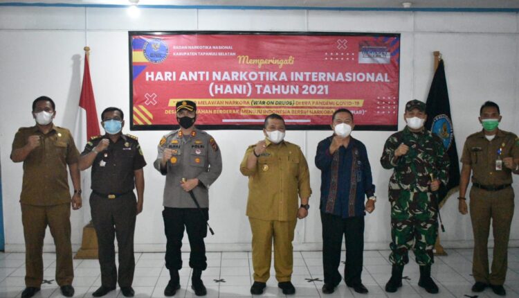 Selama Pelaksanaan Acara Peringatan Hari Anti Narkotika Internasional (HANI) Tahun 2021 berlangsung, tetap memperhatikan Protokol Kesehatan seperti Mencuci tangan, Memakai masker, Menjaga jarak dan Menghindari kerumunan, Mengurangi mobilitas (5M) guna Mencegah Penyebaran Virus Corona (Covid – 19).(Red/Hum)