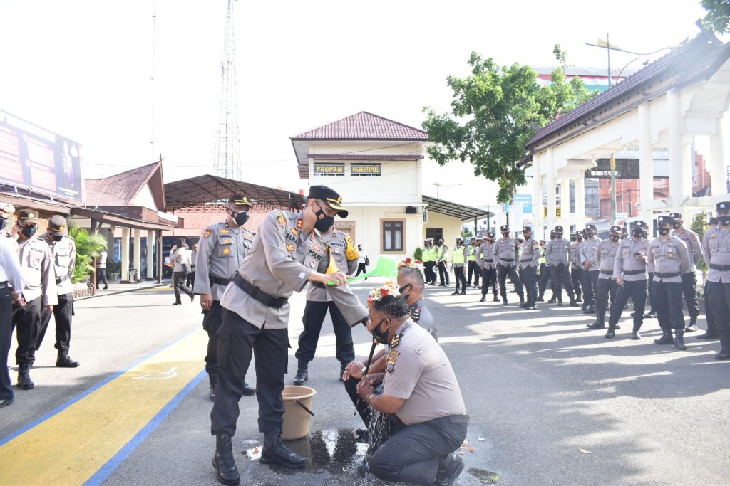 Dilanjutkan dengan Tradisi Penyiraman Bunga kepada Personil Polres Tapanuli Selatan yang mendapat Kenaikan Pangkat.