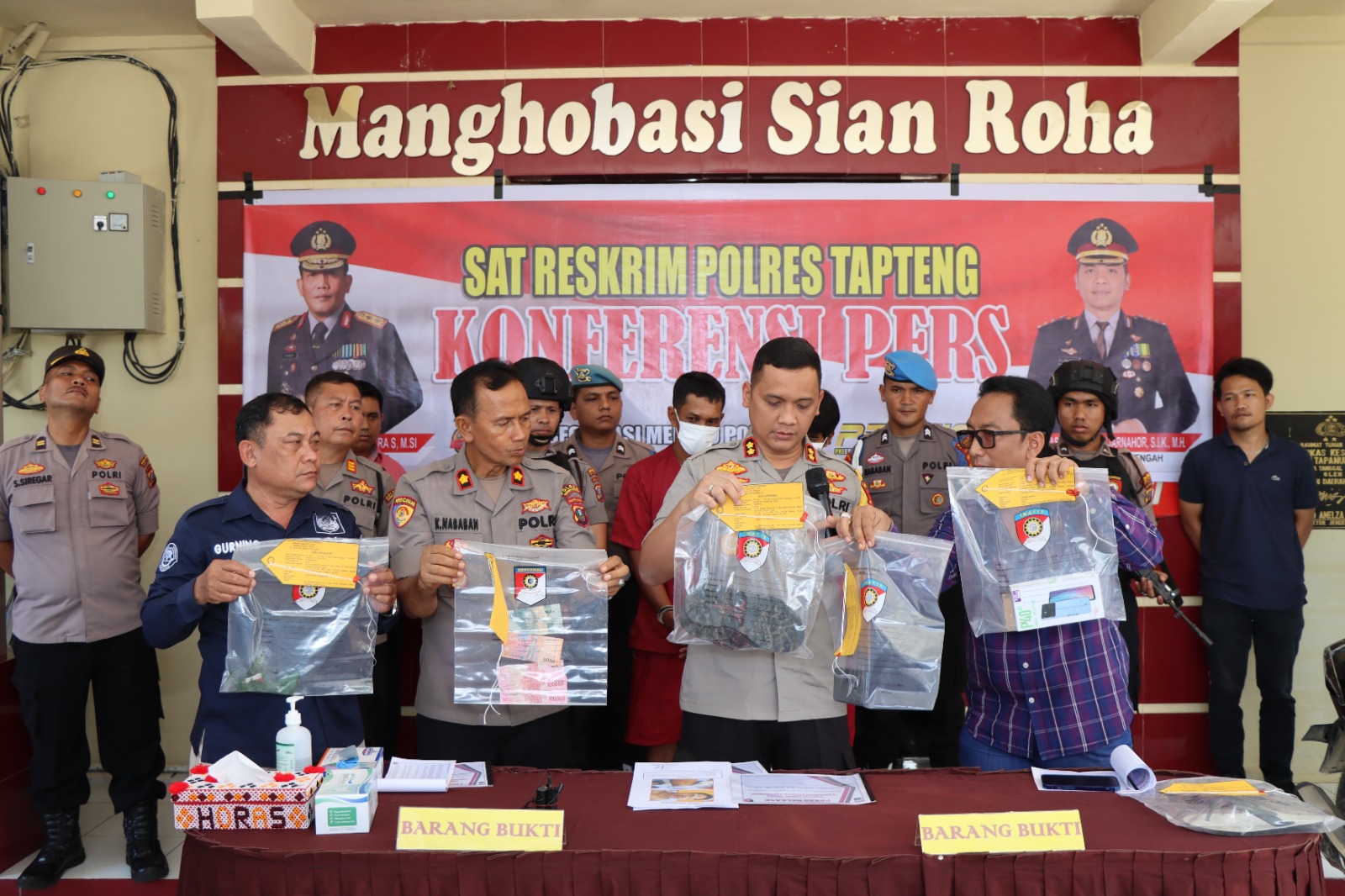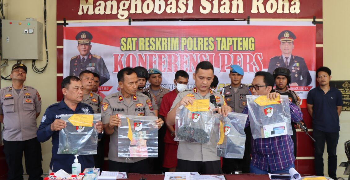 – Selanjutnya Kapolres Tapteng AKBP BASA EMDEN BANJARNAHOR, S.I.K, MH menjelaskan kronologi kejadian Tindak Pidana Pencurian dan Kekerasan :
