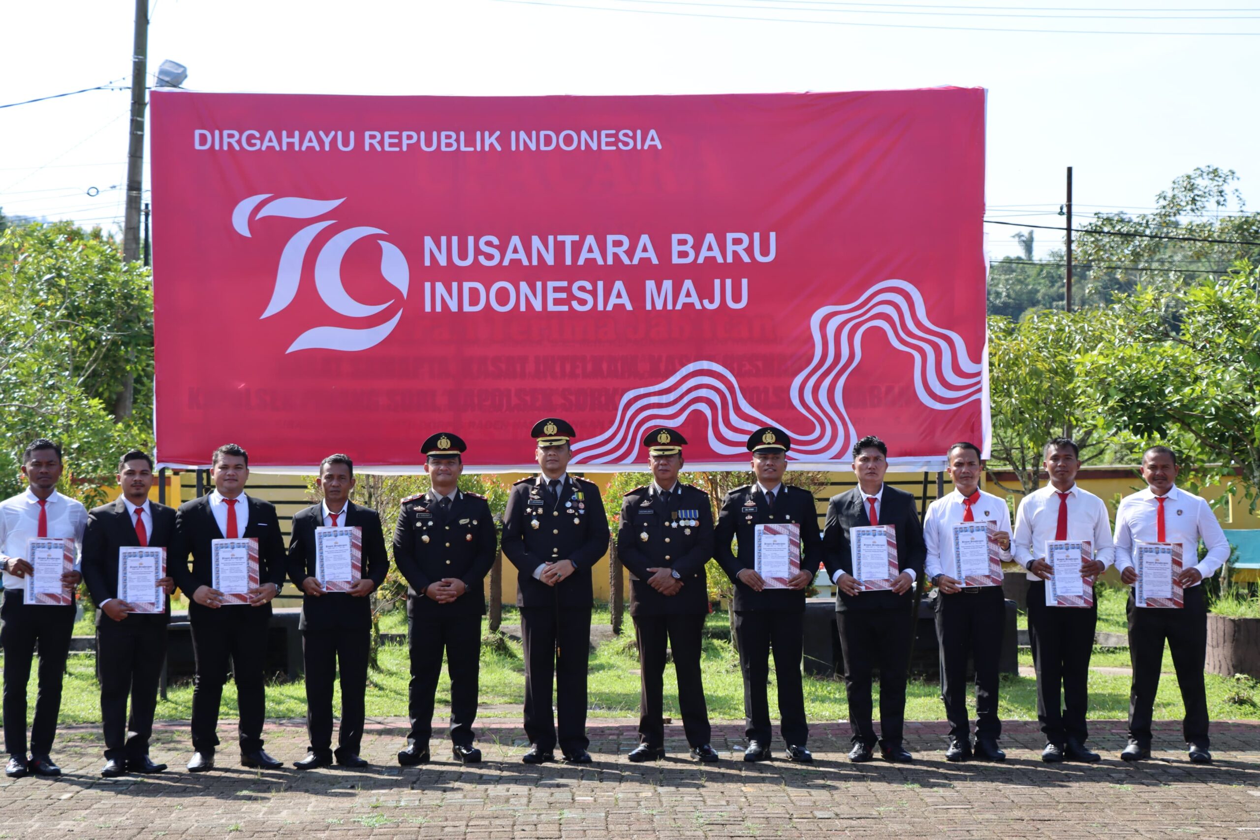 Kapolres Tapteng berikan Penghargaan kepada 40 Personil Polri, 1 Personil TNI AD dan 3 ASN Dinas Pendidikan serta 6 Atlet Karate