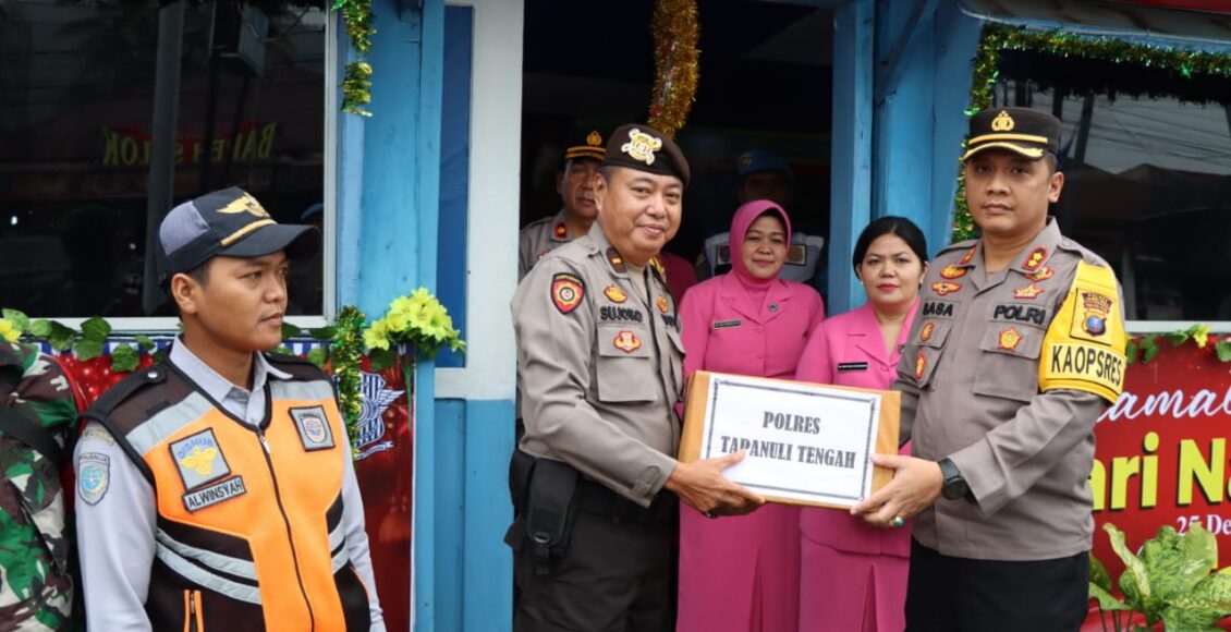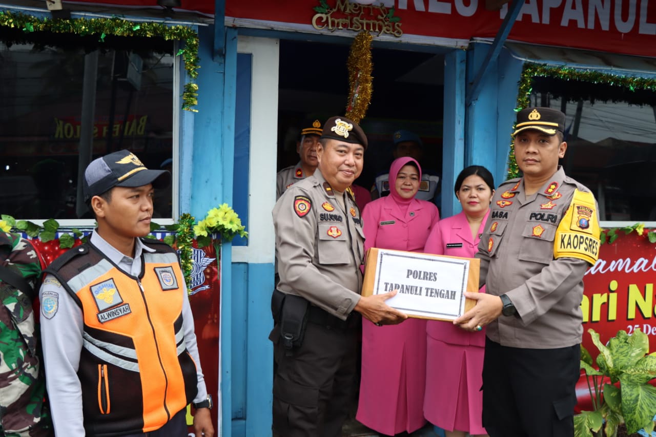 Kapolres Tapteng Kunjungi Pos Pam Nataru, Bagikan Bingkisan Natal Kepada Anggota