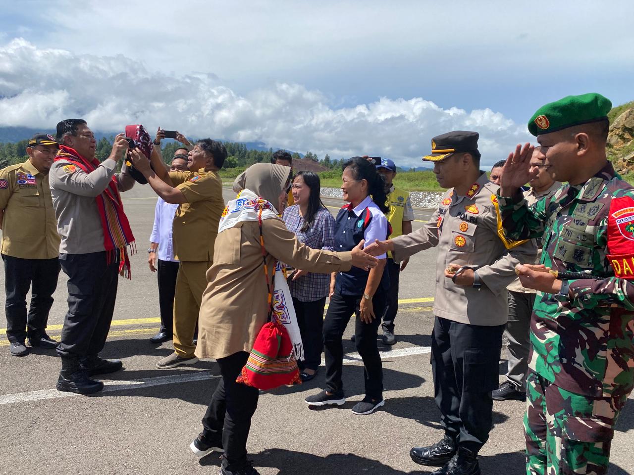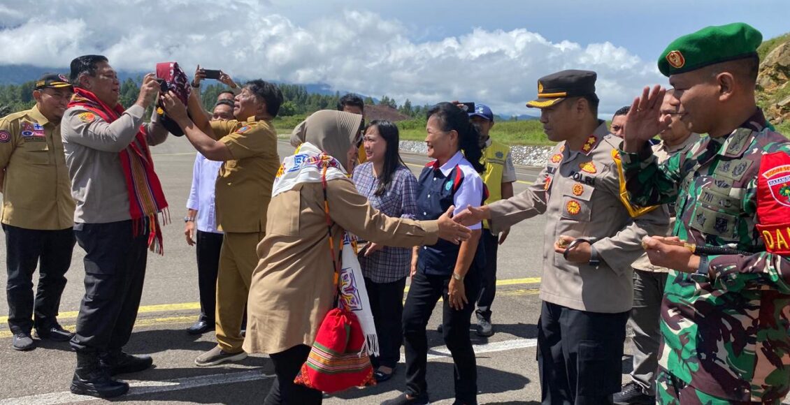 Tana Toraja,ikagawanews.id  – Kapolres Tana Toraja, Bupati Tana Toraja, Dandim 1414/Tator dan Kajari menyambut kedatangan Menteri Sosial Republik Indonesia Dr. (H.C) Ir. Tri Rismaharini, M.T dan Wakapolda Sulsel Brigjen Pol Chuzaini Patoppoi S.St.M.K.,S.H di Bandara Buntu Kunik Kecamatan Mengkendek Kab. Tana Toraja, Rabu (16/04/24)