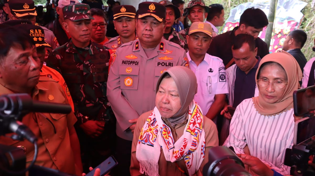 Kunjungan Mensos Risma yang di dampingi Wakapolda Sulsel dalam rangka mengunjungi korban bencana tanah longsor serta memberikan bantuan sosial baik dalam bentuk materi maupun perlengkapan yang di butuhkan oleh korban bencana