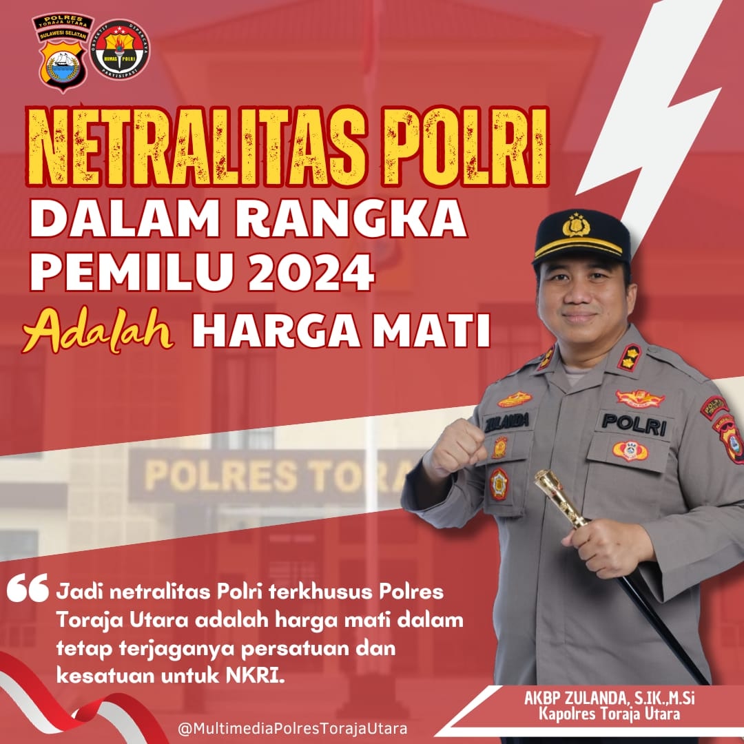 Kapolres Toraja Utara AKBP Zulanda, S.IK.,M.Si berharap agar anggotanya bisa menjaga dan bersikap netral yang adalah harga mati dalam perhelatan pesta demokrasi Pemilu 2024 demi tetap terjaganya persatuan dan kesatuan untuk NKRI.