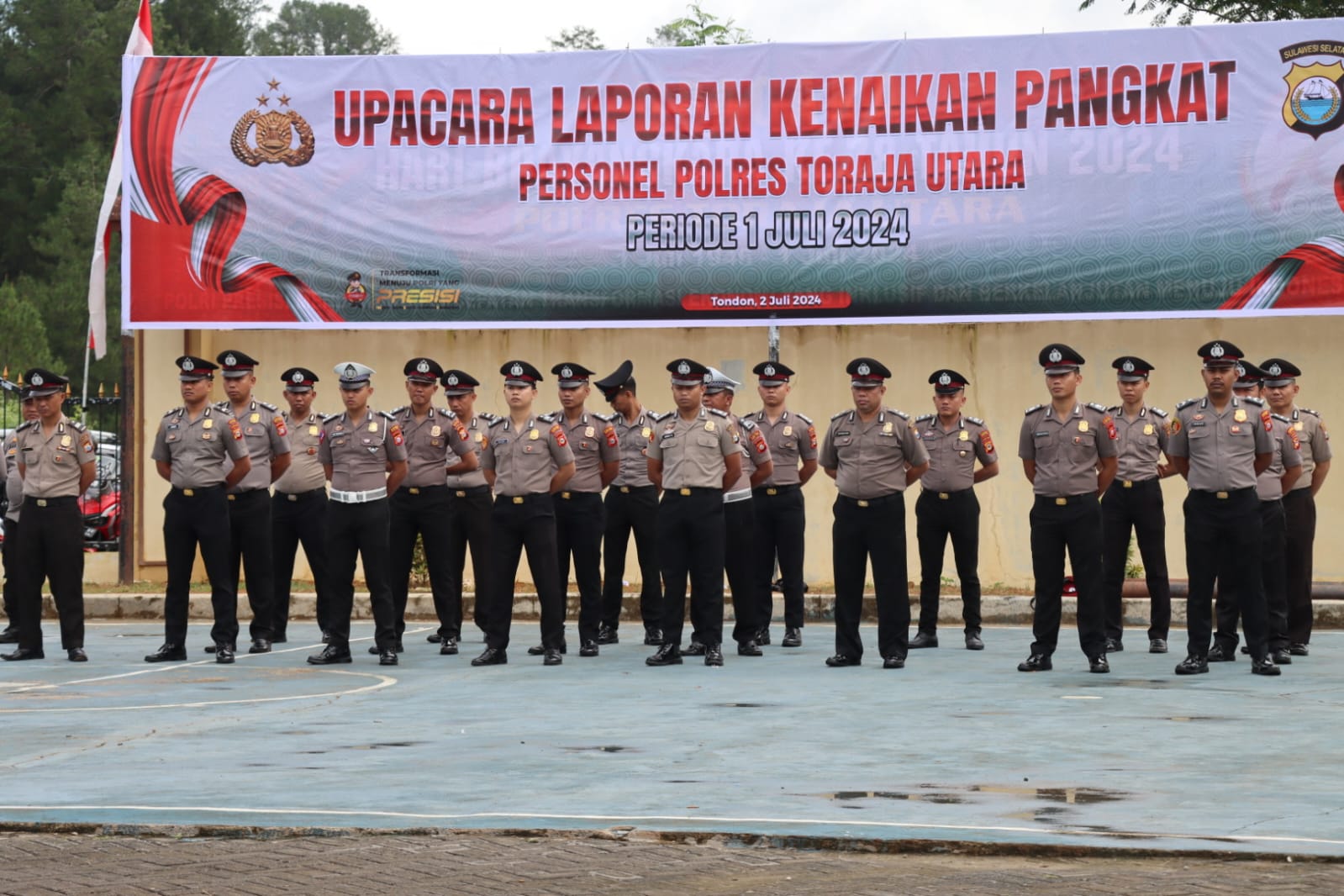 Sebanyak 15 Personel Polres Toraja Utara yang mendapatkan kenaikan pangkat setingkat lebih tinggi diantaranya dari pangkat AIPDA ke pangkat AIPTU sebanyak 6 personel, dari pangkat BRIPKA Ke pangkat AIPDA sebanyak 4 Personel, dari pangkat BRIGPOL ke pangkat BRIPKA Sebanyak 1 Personel, dari pangkat BRIPTU ke BRIPKA sebanyak 5 peronel dan dari pangkat BRIPDA ke BRIPTU Sebanyak 10 Personel.