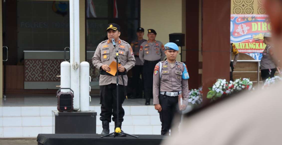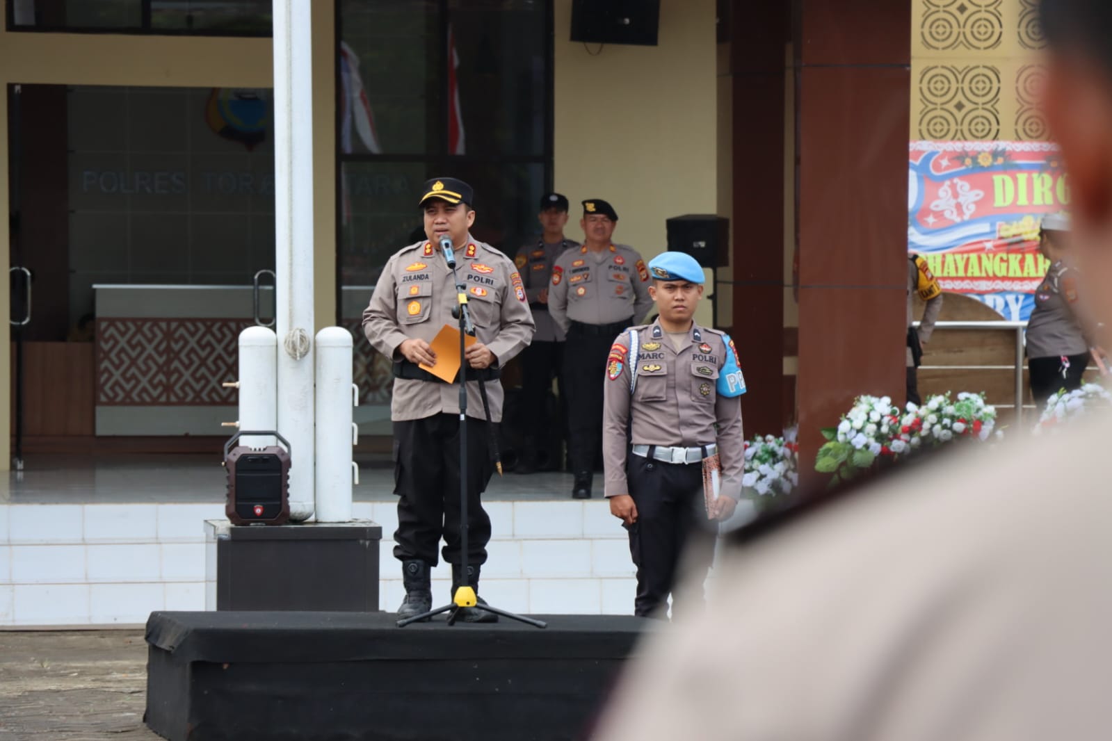 Upacara yang digelar setelah sehari peringatan HUT Bhayangkara tersebut dipimpin langsung oleh Kapolres Toraja Utara AKBP Zulanda, S.IK.,M.Si, dengan Perwira Upacara Kasat Samapta AKP T. Sirenden dan Komandan Upacara IPTU Pelipus Mantong.