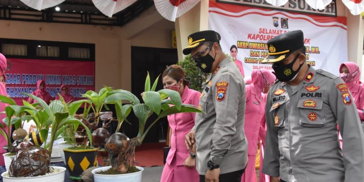 Dalam kesempatan tersebut, Kapolres bersama Ketua Bhayangkari Cabang Trenggalek cukup kagus saat meninjau hasil karya anggota Polsek Suruh berupa tanaman bonsai kelapa serta UMKM produksi anggota Bhayangkari yang memiliki nilai ekonomi tinggi.(Red/Hum)