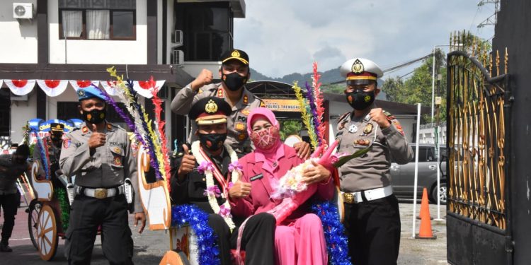 Kapolres Trenggalek Kayuh Becak Lepas Purnawirawan