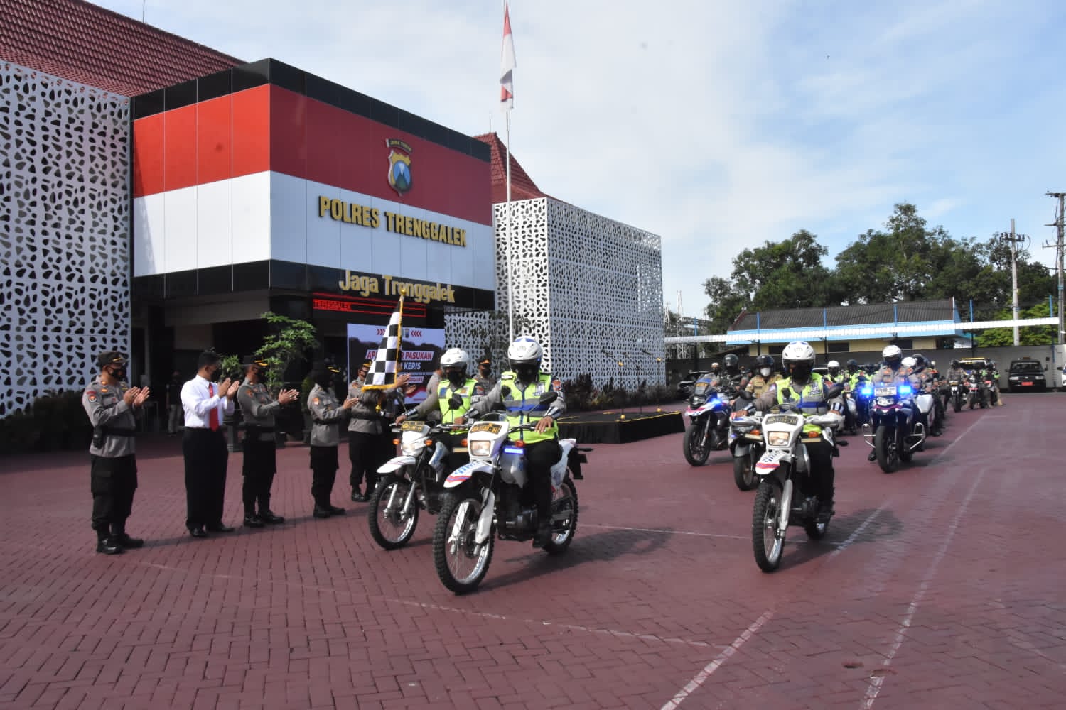 Berangkat bersama-sama dari halaman Mapolres, Rombongan yang terdiri dari Kapolres Trenggalek AKBP Dwiasi Wiyatputera, S.H., S.I.K., M.H., Dandim 0806 Letkol Kav Peddy Adi Prasetyo, S.Sos. dan Wakil Bupati Syah M. Natanegara, S.H., mengendarai sepeda motor berkeliling kota Trenggalek diikuti oleh sejumlah personel yang terlibat dalam tim `Pamor Keris` baik dari unsur Polri, TNI, Satpol PP maupun Dishub.