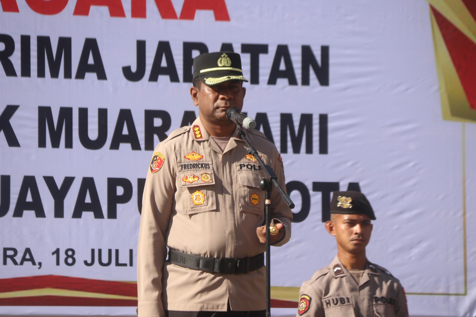 Jayapura Kota,ikagawanews.id – Usai pimpin pelaksanaan upacara serah terima jabatan Kapolsek Muara Tami dari AKP Sem Hanasbey kepada AKP H. Zakarudin, S.Pd., M.M, Kapolresta Jayapura Kota Kombes Pol Fredrickus W.A. Mclarimboen, S.I.K., M.H., CPHR memerintahkan pejabat yang baru agar segera menyesuaikan diri dan lakukan deteksi dini dalam rangka pelaksanaan Pemungutan Suara Ulang (PSU) Pemilihan Gubernur Provinsi Papua 6 Agustus mendatang.