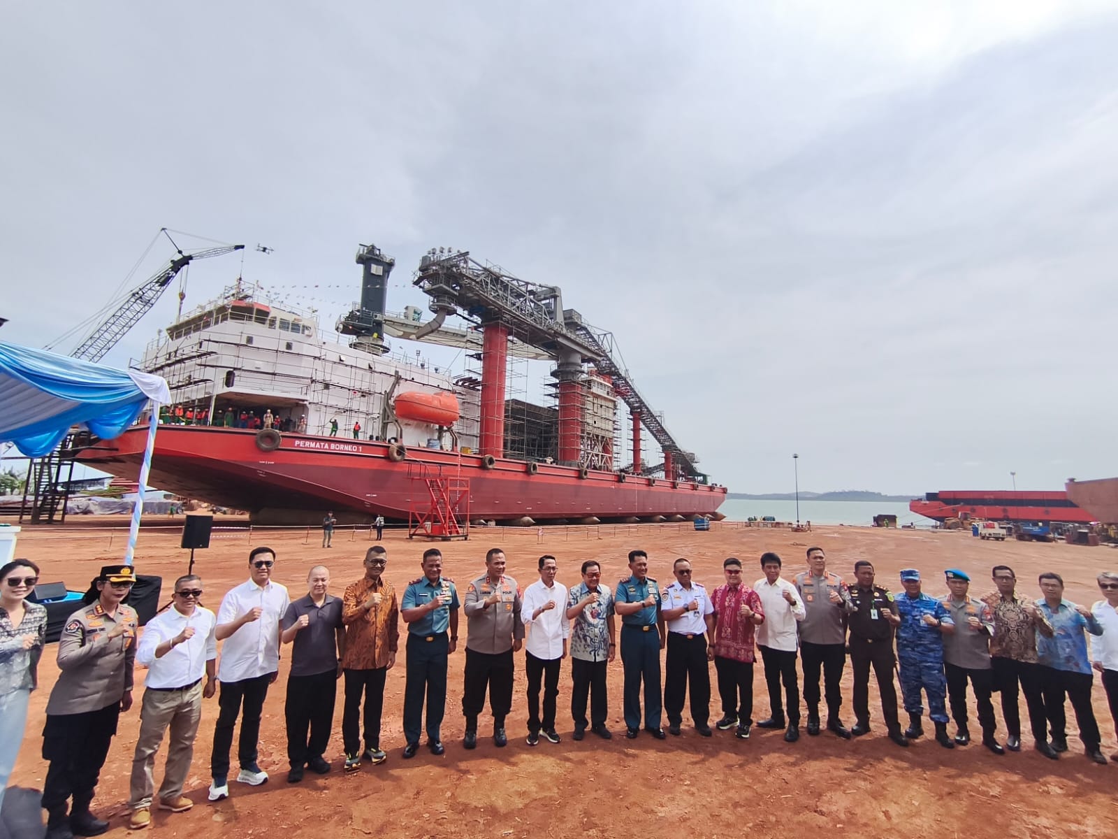 BARELANG,ikagawanews.id – Launching Ceremony Peluncuran Kapal Ploating Landing Facility (PLF) Permata Borneo 1 telah dilaksanakan di PT. Bahtera Bahari Shipyard (BBS), Kelurahan Kabil, Kecamatan Nongsa, Kota Batam. Kegiatan tersebut dihadiri Kapolda Kepulauan Riau Irjen Pol Asep Safrudin, S.I.K., M.H., sebagai tamu undangan yang didampingi Kapolresta Barelang Kombes Pol Anggoro Wicaksono, S.H., S.I.K., M.H., bersama unsur Forkopimda dan tamu undangan lainnya. Senin, (19/01/2026).