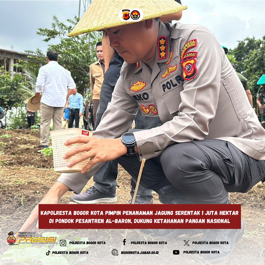 Penanaman jagung serentak 1 juta hektar ini dilaksanakan sebagai bentuk dukungan terhadap Asta Cita Presiden RI, khususnya dalam bidang ketahanan pangan. Program ini dilaksanakan secara serentak di seluruh Indonesia, dan untuk Polresta Bogor Kota, kegiatan ini berlangsung di enam kecamatan, dengan pusat kegiatan di kebun Pondok Pesantren Al-Baron.