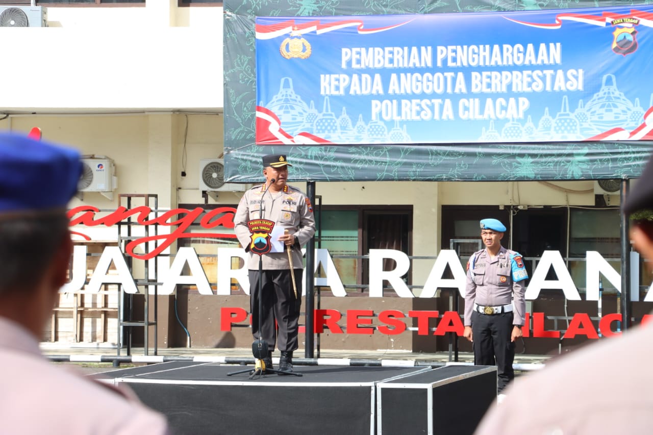 Dalam sambutannya, Kapolresta Cilacap Kombes Pol Budhy Adhy Buono menyampaikan bahwa penghargaan ini adalah bentuk apresiasi institusi atas dedikasi dan prestasi anggota.