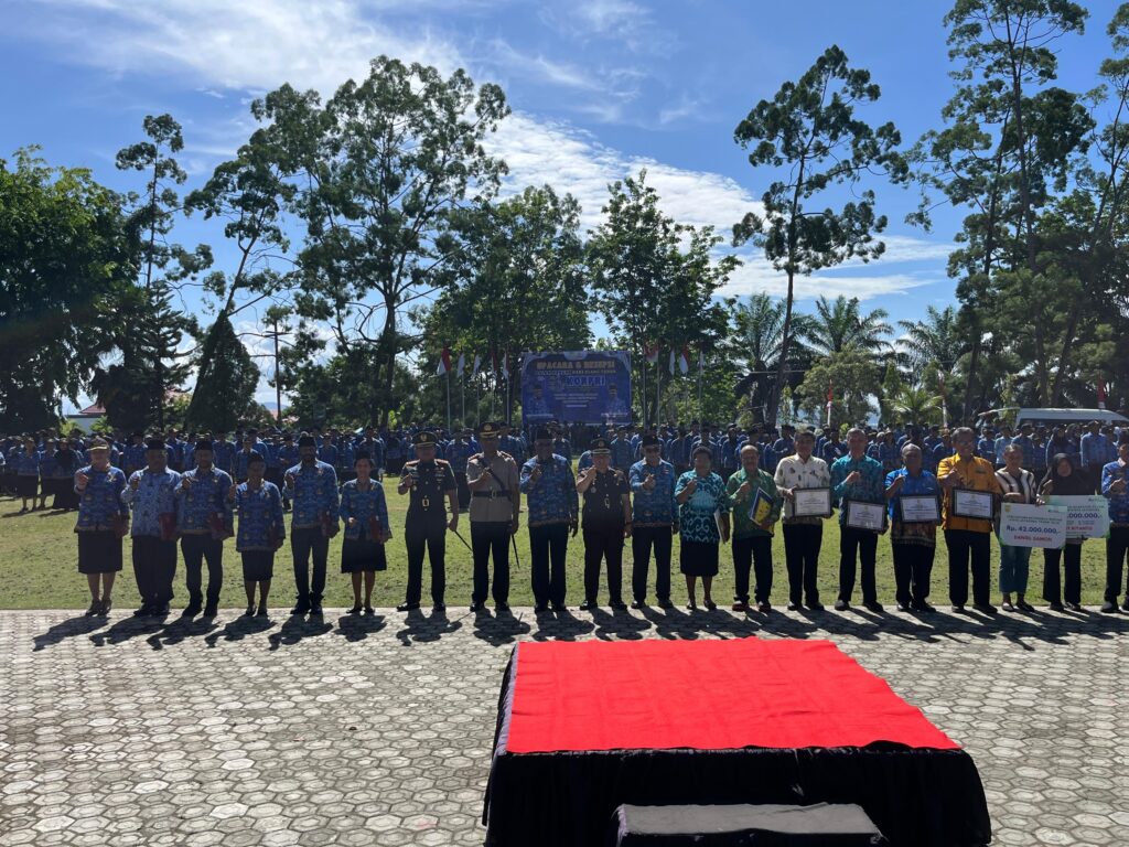 Kegiatan yang mengusung tema “Bersatu, Berdaulat, Bersama Korpri dalam Mewujudkan Indonesia Maju” ini dihadiri oleh unsur Forum Koordinasi Pimpinan Daerah (Forkopimda), Pimpinan OPD, serta ASN dan CPNS sebagai peserta upacara.