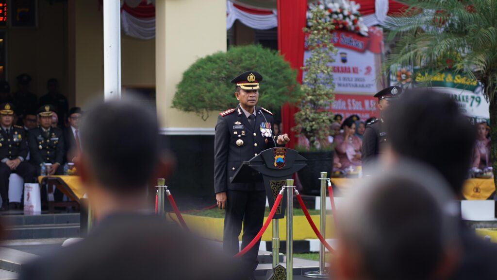 BANYUMAS,ikagawanews.id – Kepolisian Resor Kota Banyumas menggelar upacara peringatan Hari Ulang Tahun (HUT) Bhayangkara ke 79 di halaman Mapolresta Banyumas, Selasa (1/7/25).