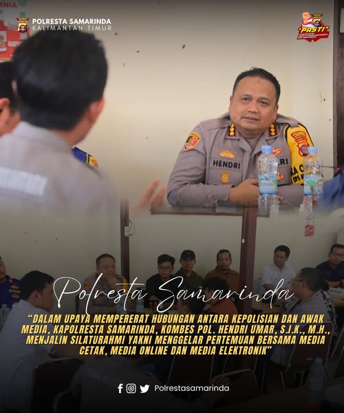 SAMARINDA,ikagawanews.id – Kapolresta Samarinda, Kombes Pol Hendri Umar, S.I.K., M.H., menggelar pertemuan silaturahmi dengan awak media cetak, media online, dan media elektronik pada Kamis (6/2/2025) di Depot Kediri, Jl. Rapak Indah, Karang Asam Ilir, Kecamatan Sungai Kunjang.