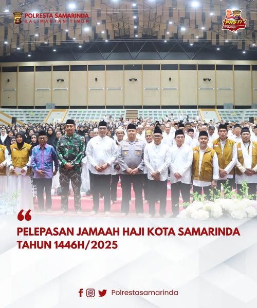 SAMARINDA,ikagawanews.id – Suasana haru dan khidmat menyelimuti Aula Gedung Serbaguna GOR Segiri Samarinda pada Sabtu (19/4/2025) pagi, saat digelarnya kegiatan Pelepasan Calon Jemaah Haji Kota Samarinda Tahun 1446 H / 2025 M. Acara ini secara resmi dilepas oleh Walikota Samarinda, Dr. H. Andi Harun, S.T., S.H., M.Si, yang juga turut memberikan pesan-pesan penting kepada seluruh jemaah yang akan berangkat ke Tanah Suci.