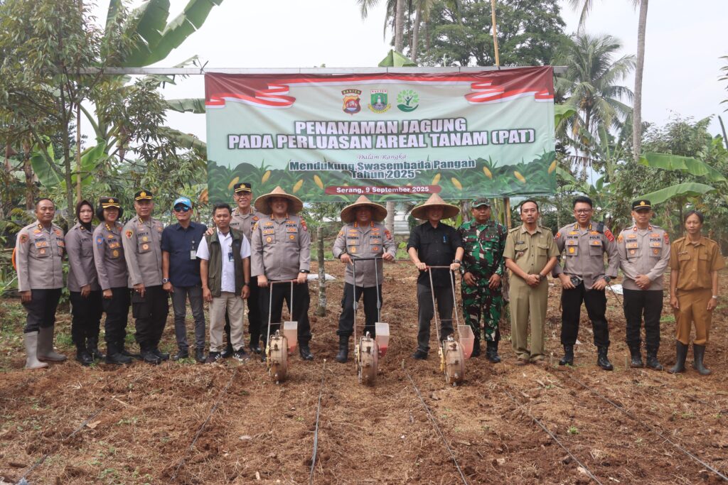 Dalam kegiatan tersebut, Wakapolda Banten bersama Kapolresta Serang Kota dan para tamu undangan secara simbolis melakukan penanaman jagung di lahan perluasan areal tanam. Program ini merupakan bagian dari upaya ketahanan pangan nasional, khususnya dalam mendukung ketersediaan komoditas jagung sebagai bahan pokok strategis.