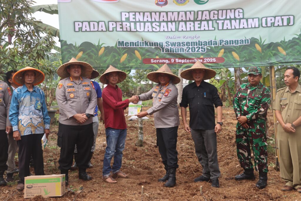 SERKOT,ikagawanews.id – Kapolresta Serang Kota Kombes Pol. Yudha Satria, S.H., S.I.K., M.H., bersama Wakapolda Banten Dr. Hendra Wirawan, S.H., S.I.K., M.H., menghadiri kegiatan penanaman serentak jagung di lahan perluasan areal tanam jagung, Kecamatan Gunung Sari, Kabupaten Serang pada Selasa (09/09/2025).