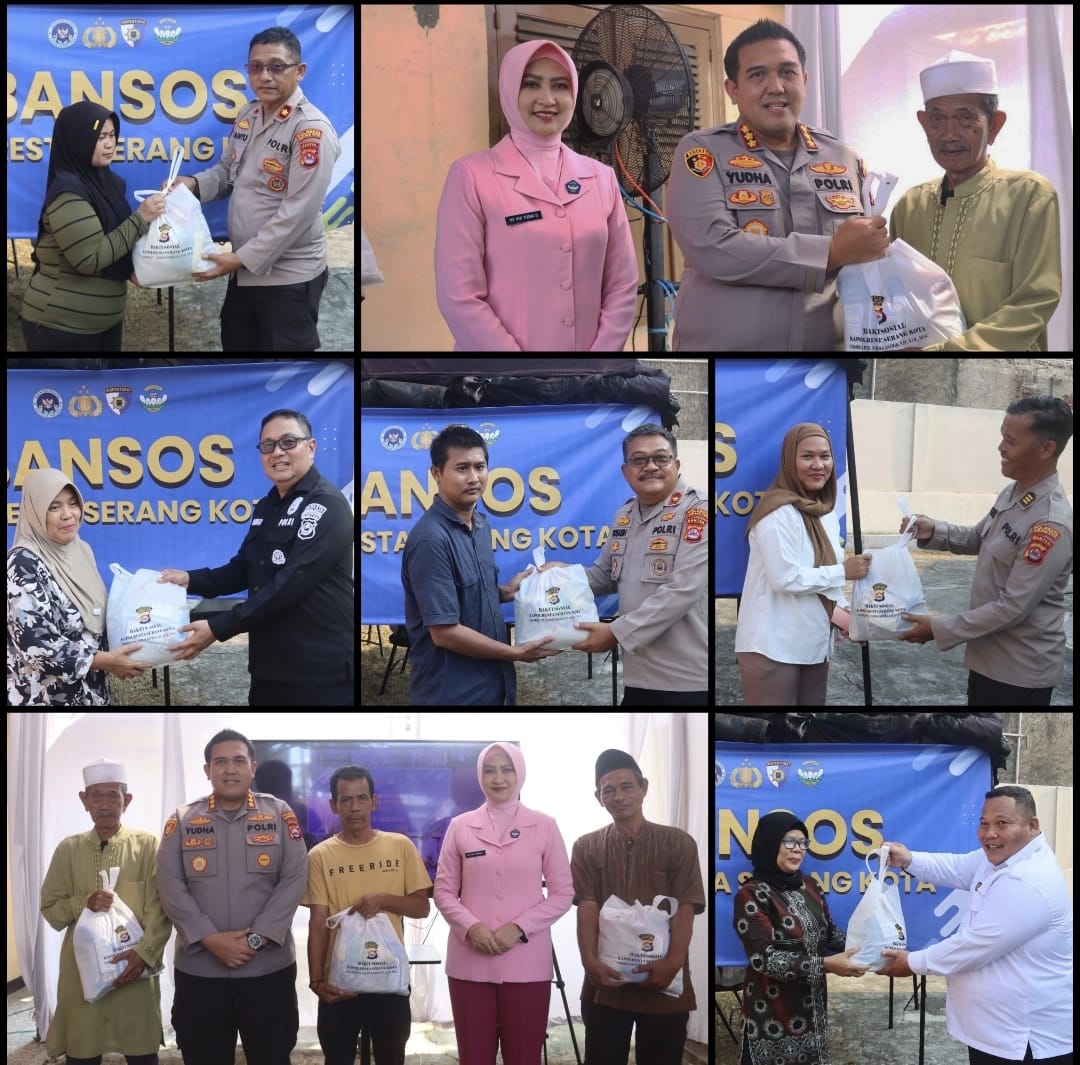 SERKOT, ikagawanews.id – Kapolresta Serang Kota, Kombes Pol. Yudha Satria, S.H., S.I.K., M.H., bersama jajaran pejabat utama Polresta Serang Kota melaksanakan kegiatan membagikan bantuan sosial (bansos) berupa paket sembako kepada masyarakat sekitar pada Rabu, 6 Agustus 2025.