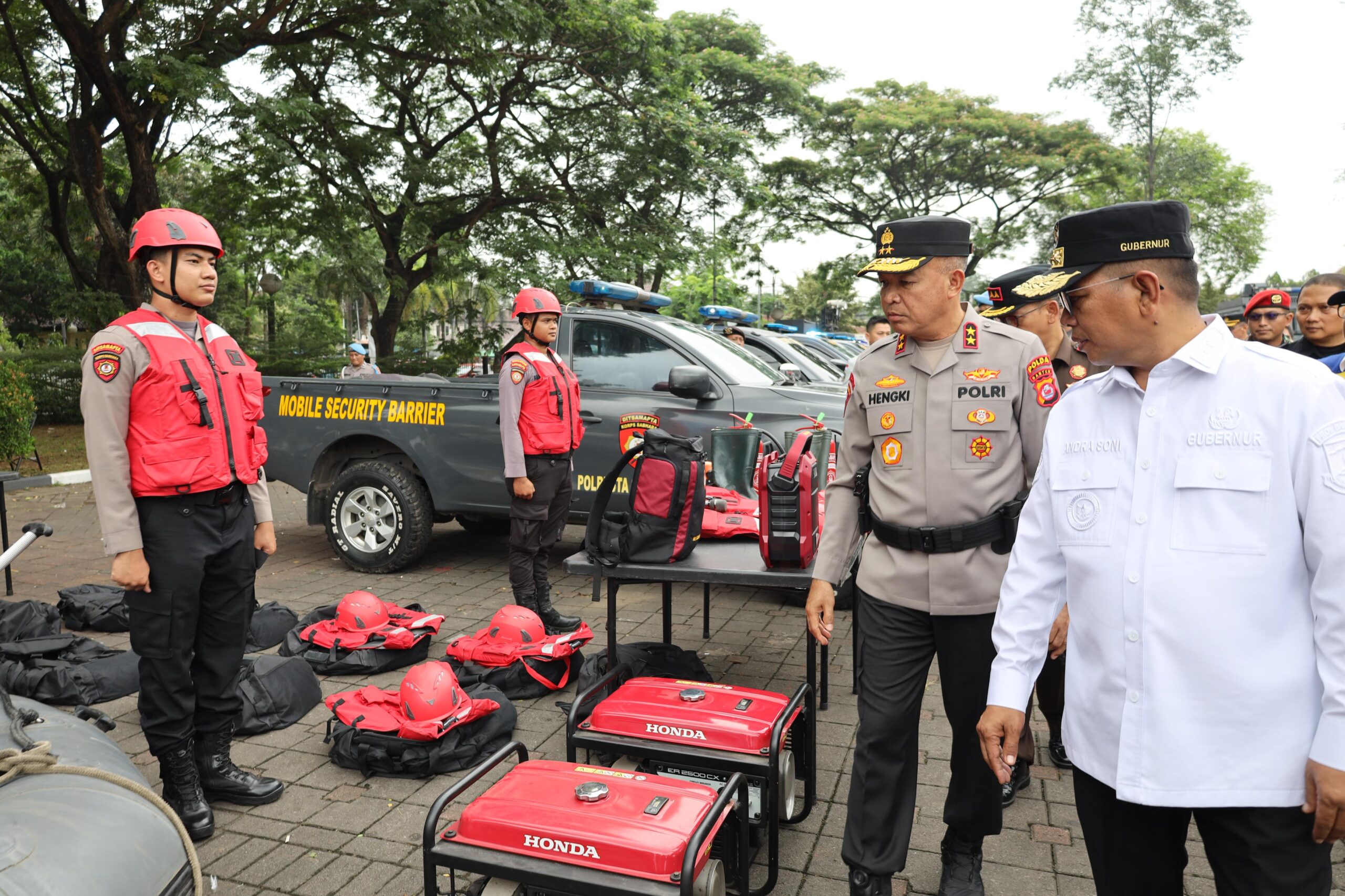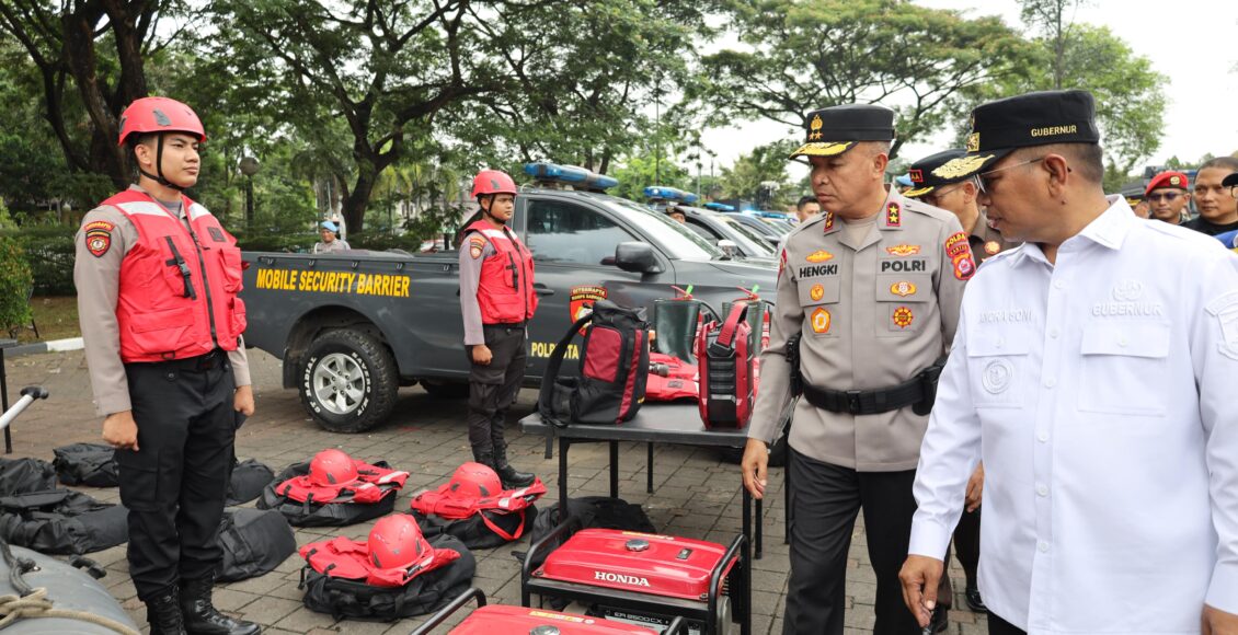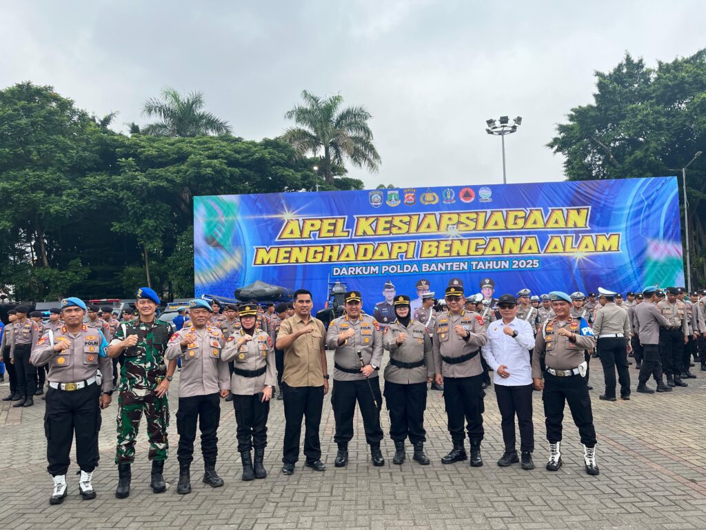 Apel tersebut dipimpin langsung Kapolda Banten Irjen Pol. Hengki, S.I.K., M.H., dan turut dihadiri Gubernur Banten Andra Soni, unsur Muspida Provinsi Banten, serta instansi terkait seperti BPBD, Damkar, dan Relawan Banten.