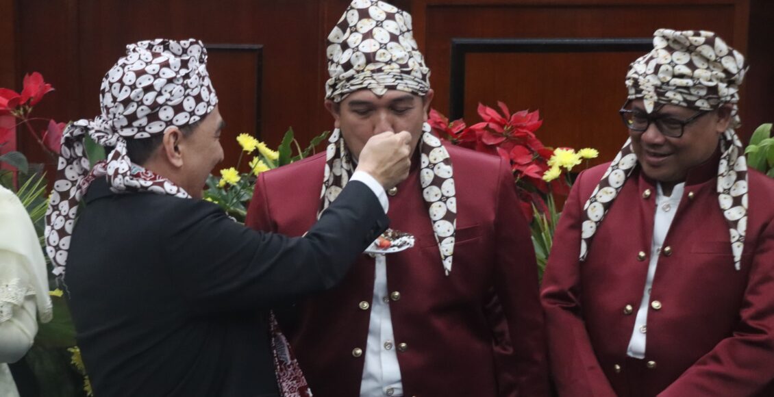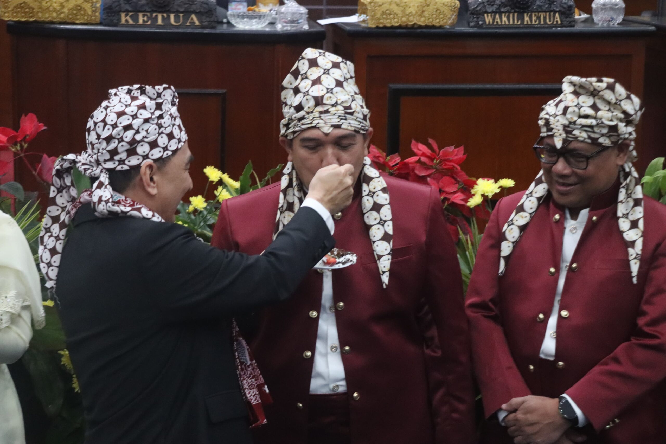 Walikota Serang dan Forkopimda Kota serang di supi potongan tumpeng perayaan Hut Kota Serang ke 18 Oleh Wakil Gubernur Achmad Dimiyati.