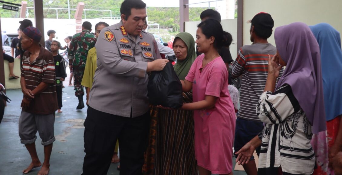 “Semoga banjir segera surut, masyarakat dapat kembali beraktivitas secara normal, dan seluruh warga selalu diberikan kesehatan,” ujar Kombes Pol. Yudha Satria saat berinteraksi dengan warga.