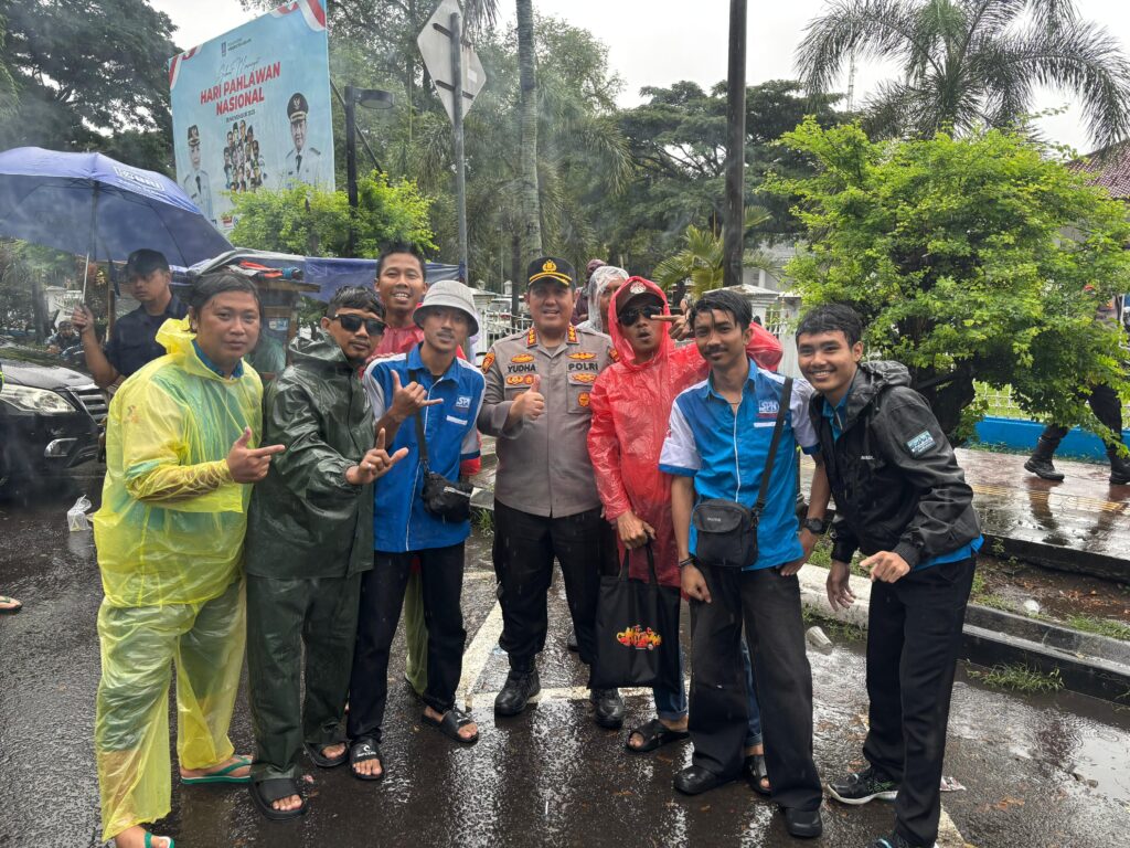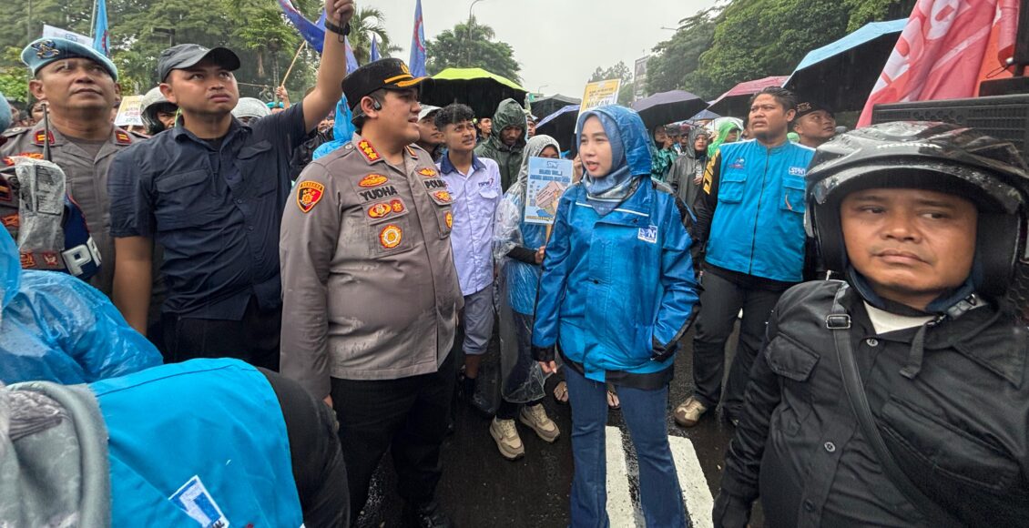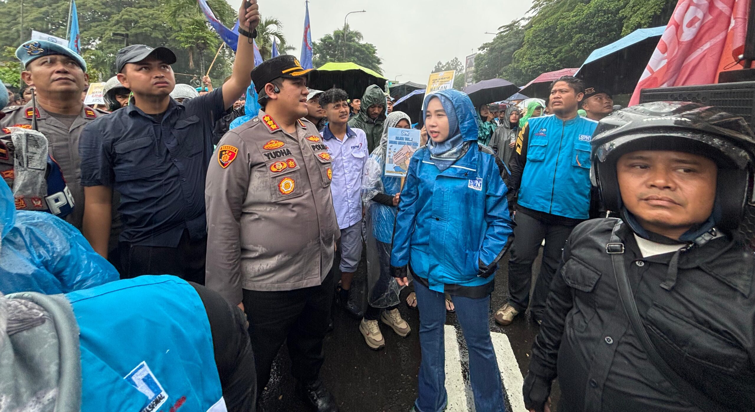 Meskipun cuaca hujan mengguyur kawasan Alun-alun Kota Serang, Kapolresta Serkot bersama personel pengamanan tetap siaga di lapangan. Situasi tersebut tidak menyurutkan semangat personel Polri dan para buruh untuk bersama-sama menjaga kondisi tetap aman dan kondusif. Terlihat adanya komunikasi dan koordinasi yang baik antara aparat kepolisian dan peserta aksi.