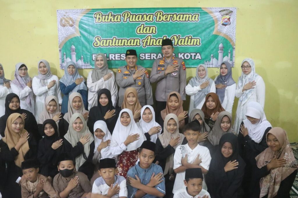 Kapolresta Serkot Kombes Pol. Yudha Satria, S.H., S.I.K., M.H., bersama pejabat utama Polresta Serkot dan ibu ketua Bhayangkari Cabang Serang Kota Ny. Vivi Yudha Satria bersama Bhahangakari Polresta Serkot bersama melaksanakan kegiatan buka puasa bersama sekaligus berbagi dengan memberikan santunan kepada anak-anak yatim piatu.