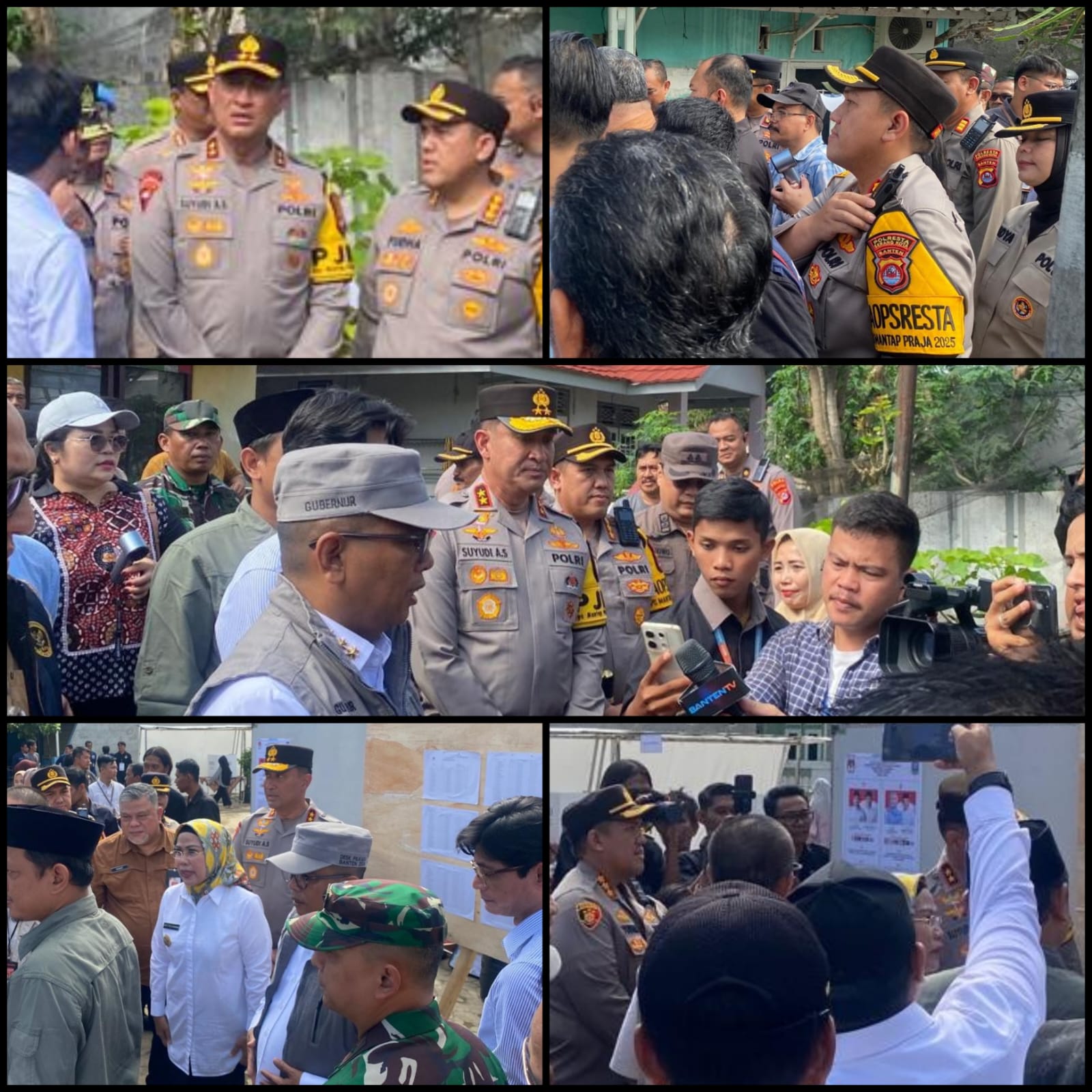 SERKOT,ikagawanews.id – Kapolresta Serang Kota Kombes Pol. Yudha Satria, S.H., S.I.K., M.H. mendampingi Kapolda Banten Irjen Pol. Suyudi Ario Seto, S.H., S.I.K., M.H. bersama Gubernur Banten Andra Soni serta unsur Forum Koordinasi Pimpinan Daerah (Forkopimda) tingkat Provinsi dan Kabupaten Serang meninjau langsung lokasi Pemungutan Suara Ulang (PSU) di Kecamatan Baros, Kabupaten Serang pada Sabtu, 19/4.