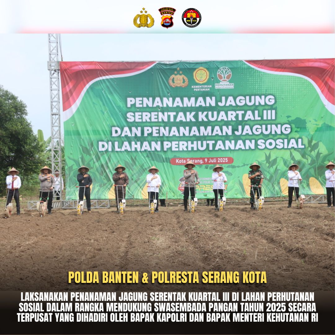 SERKOT,ikagawanews.id – Kapolresta Serang Kota Kombes Pol. Yudha Satria, S.H., S.I.K., M.H. mengikuti kegiatan Penanaman Jagung Serentak Kuartal III dan Penanaman Jagung di Lahan Perhutanan Sosial yang berlangsung di Kampung Pipitan, Kecamatan Walantaka, Kota Serang, pada Kamis (09/07).