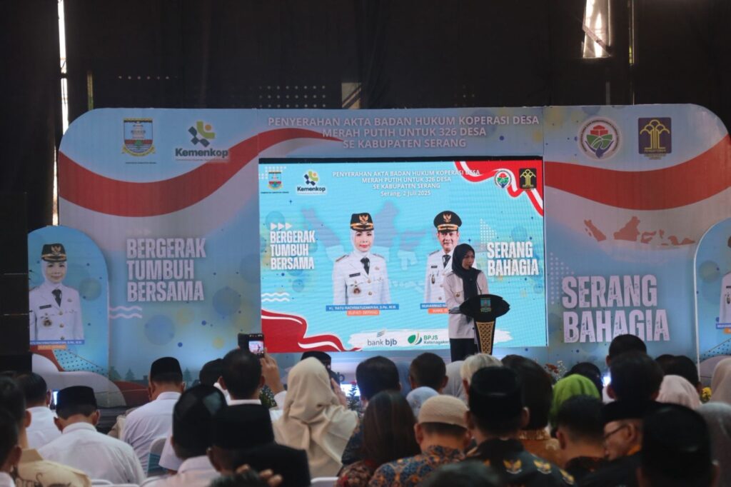 SERKOT,ikagawanews.id – Pemerintah Kabupaten Serang menggelar kegiatan Penyerahan Akta Badan Hukum Koperasi Desa (Kopdes) Merah Putih untuk 326 desa di wilayah Kabupaten Serang, bertempat di Lapangan Indoor Tenis Pemkab Serang, pada Rabu (02/07/2025).