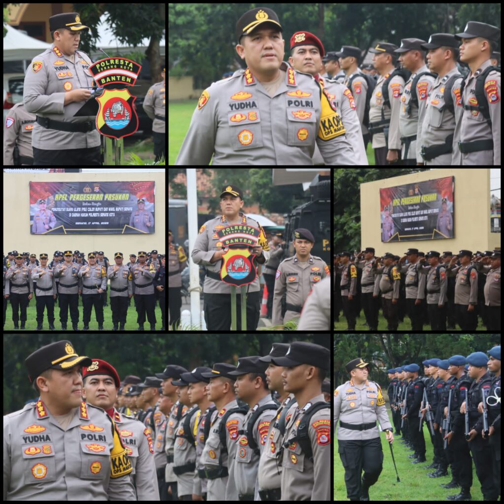 SERKOT, ikagawanews.id – Kapolresta Serkot Kombes Pol. Yudha Satria, S.H., S.I.K., M.H., memimpin apel pergeseran pasukan dalam rangka pengamanan Pemungutan Suara Ulang (PSU) Calon Bupati dan Wakil Bupati Serang di wilayah hukum Polresta Serang Kota. Kegiatan apel dilaksanakan pada hari Kamis, 17 April 2025, dan diikuti oleh personel pengamanan Tempat Pemungutan Suara (TPS) dari berbagai satuan fungsi.