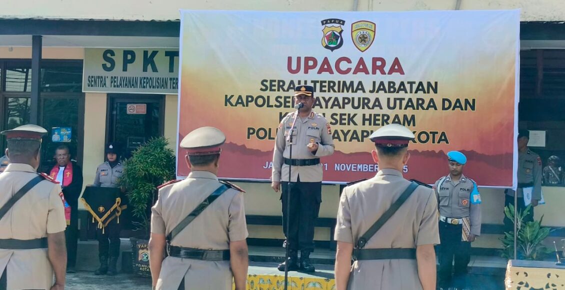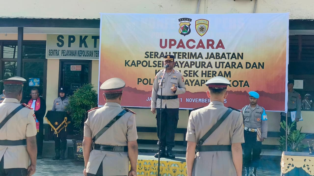 Upacara serah terima jabatan tersebut untuk Kapolsek Jayapura Utara dari pejabat lama AKP Lukman Luking ke pejabat baru AKP Rudi Frishan, sementara untuk Kapolsek Heram dari pejabat lama AKP B. Y. Ick, S.H kepada pejabat baru Iptu Andry Rihulay, S.H., M.H.
