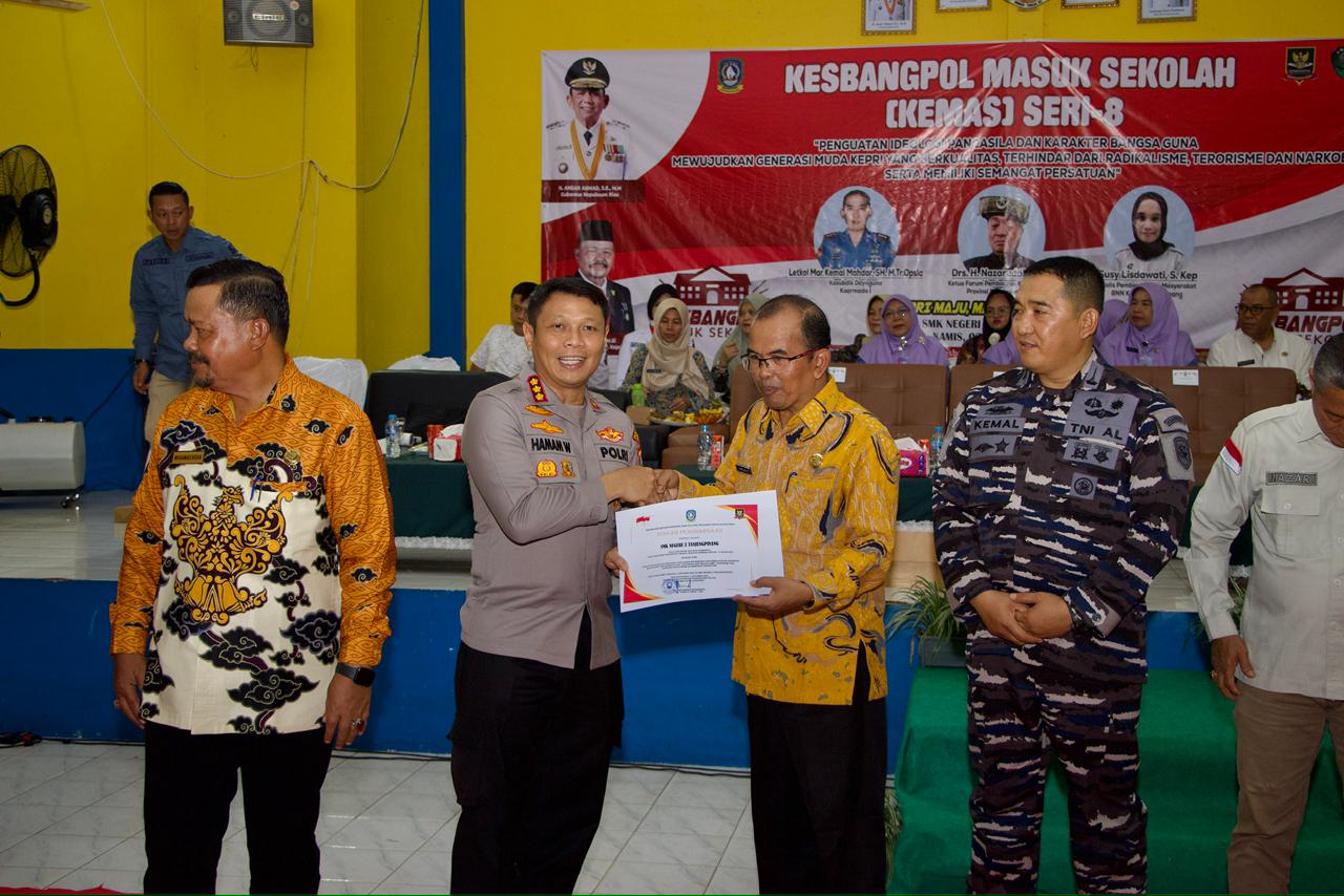 Dalam kesempatan yang berbeda, Kapolresta Tanjungpinang Kombes Pol Hamam Wahyudi, S.H., S.I.K., M.H sebut, kegiatan Kemas atau Kesbangpol masuk sekolah ini merupakan dorongan positif teruntuk pelajar di Tanjungpinang khususnya untuk jauhi narkoba, pengaruh radikalisme, serta bentuk penguatan ideologi pancasila.