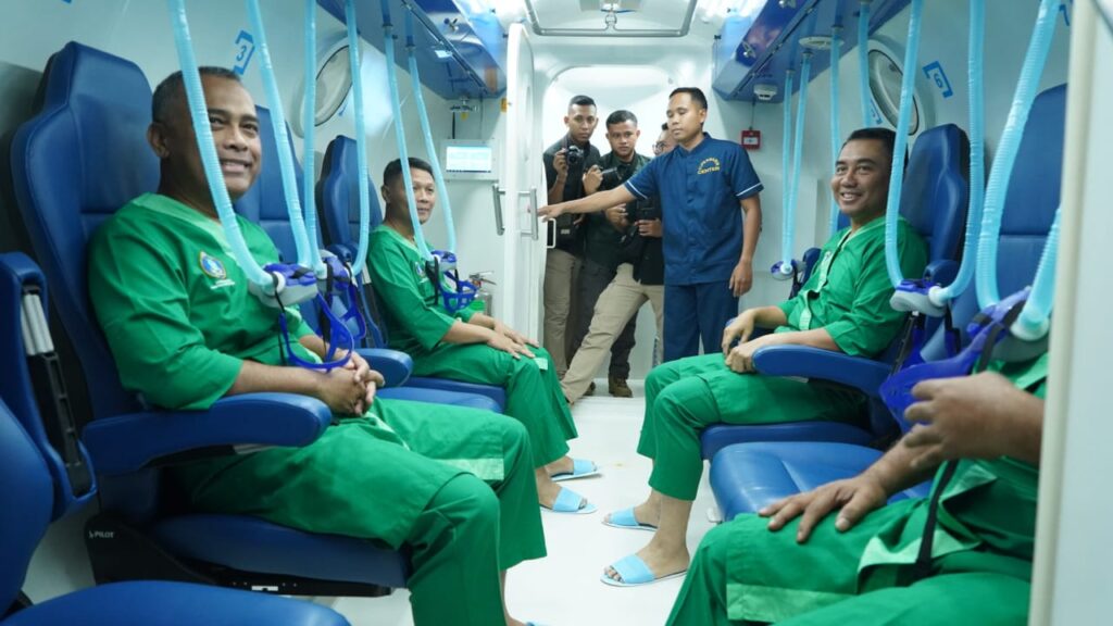 TANJUNGPINANG,ikagawanews.id – Kapolresta Tanjungpinang Kombes Pol. Hamam Wahyudi, S.H., S.I.K., M.H. menerima Brevet Kehormatan Kesehatan Penyelaman dan Hiperbarik dalam rangka Hari Kesehatan TNI AL Tahun 2025 di Gedung Klinik Terapi Hyperbarik RSAL dr. Midiyato S., Tanjungpinang, Selasa (7/10/2025).