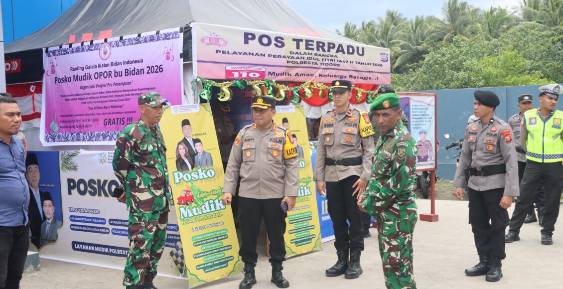 TIDORE,ikagawanews.id – Kapolresta Tidore Kombes Pol. Ampi Mesias Von Bulow, S.I.K., M.H. beserta rombongan melaksanakan pengecekan di sejumlah pos pengamanan dalam rangka Operasi Kepolisian Terpusat “Ketupat Kie Raha 2026” guna memberikan pelayanan dan pengamanan pada perayaan Idul Fitri 1447 H tahun 2026. Kegiatan tersebut dilaksanakan pada Sabtu (14/3/2026).