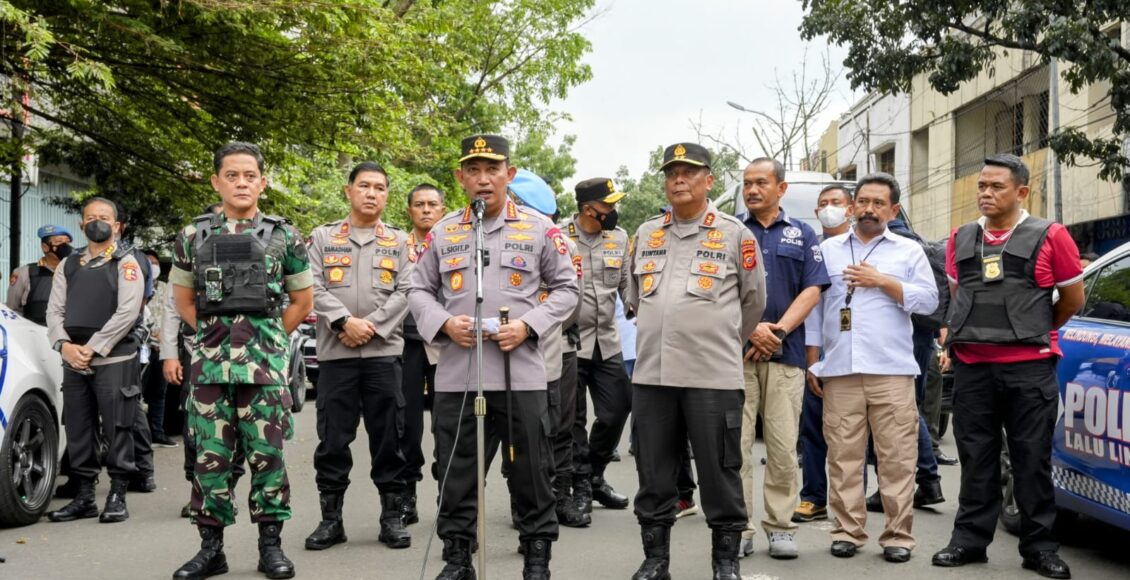 “Saat ini kita terus melakukan pendalaman. Terkait proses olah TKP sedang berlangsung tentunya dari olah TKP kita akan melakukan proses pencarian terhadap kelompok yang terafiliasi dengan pelaku yang ada di TKP,” ujar Sigit.