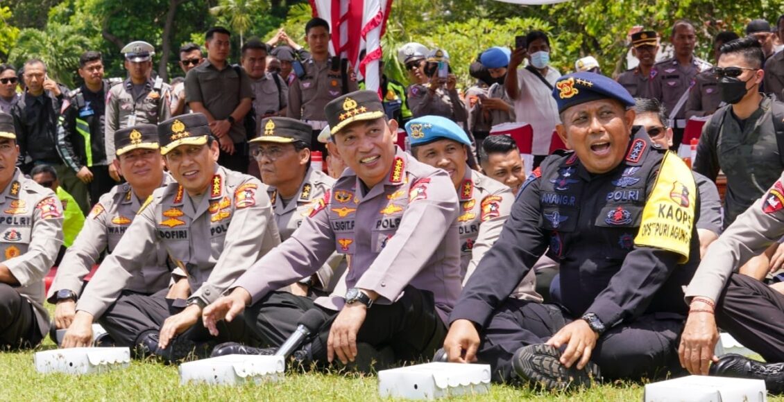DENPASAR,ikagawanews.id – Usai meninjau pelaksanaan Gladi bersih Gelar Pasukan Operasi Puri agung 2022, Kepala kepolisian Negra Republik Indonesia Jenderal Polisi Listyo Sigit Prabowo,M.s.i beserta Dankor Brimob, Kapolda Bali dan Para pejabat Utama Mabes polri yang hadir, langsung mengumpulkan Seluruh anggota untuk duduk bersama dilapangan Upacara Niti Mandala Renon Denpasar (6/11/2022).