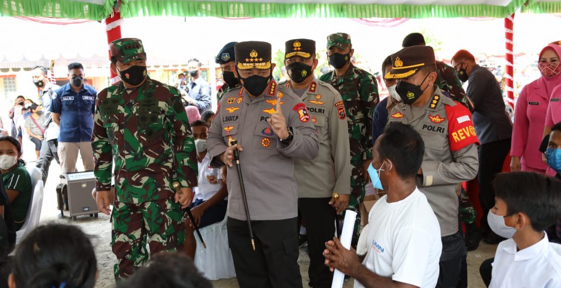 NTT,ikagawanews.id – Panglima TNI Marsekal Hadi Tjahjanto dan Kapolri Jenderal Listyo Sigit Prabowo meninjau vaksinasi massal yang dilakukan di Gereja Paroki Roh Kudus, Labuan Bajo, Manggarai Barat, Nusa Tenggara Timur (NTT), Sabtu (6/11/2021).