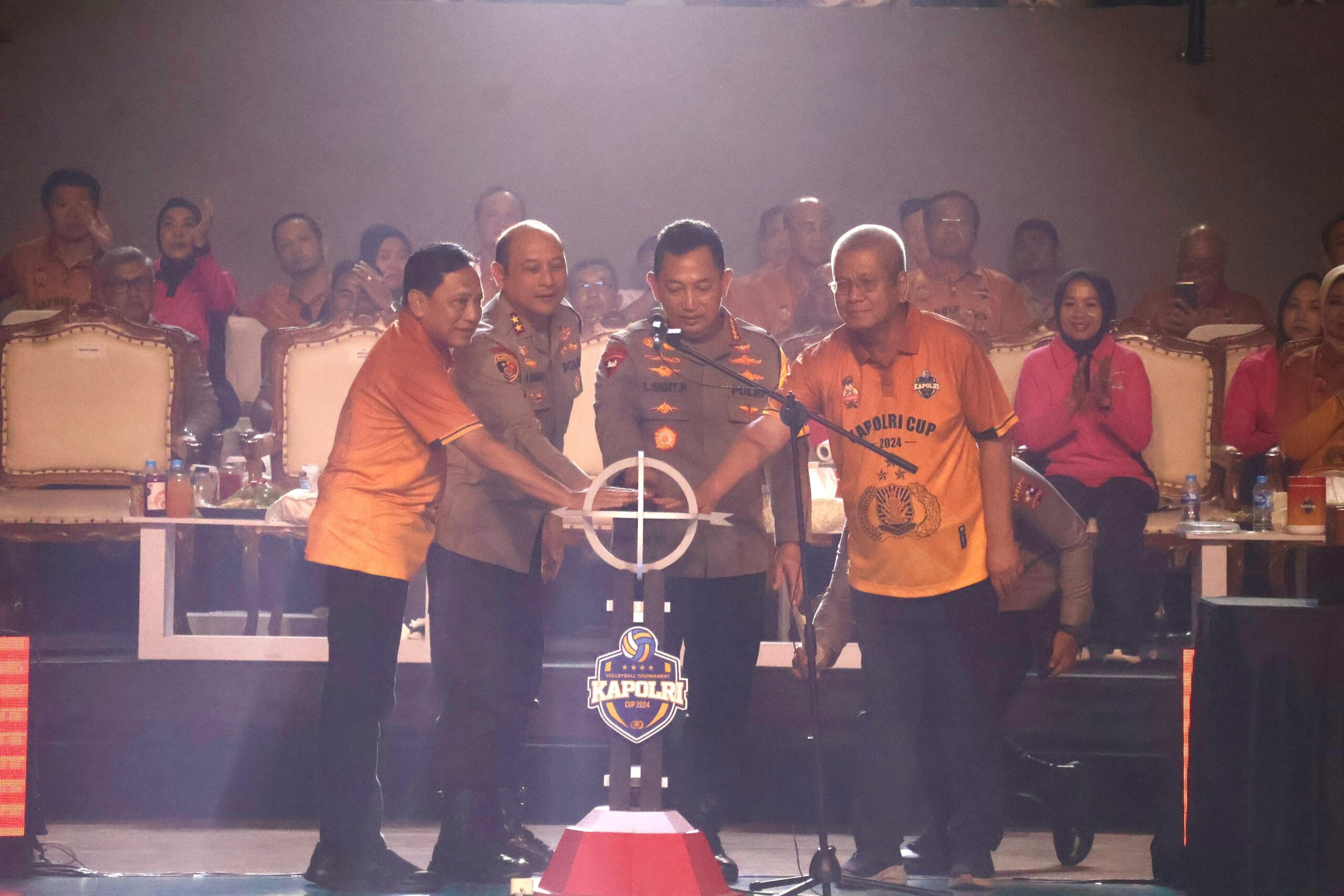 Penutupan Turnamen Voli Kapolri Cup 2024 ini ditandai dengan penekanan sirine oleh Kapolri Jenderal Drs. Listyo Sigit Prabowo M.Si., yang didampingi oleh Pj Gubernur, Kapolda Kalbar dan Ketua PBVSI Pusat.