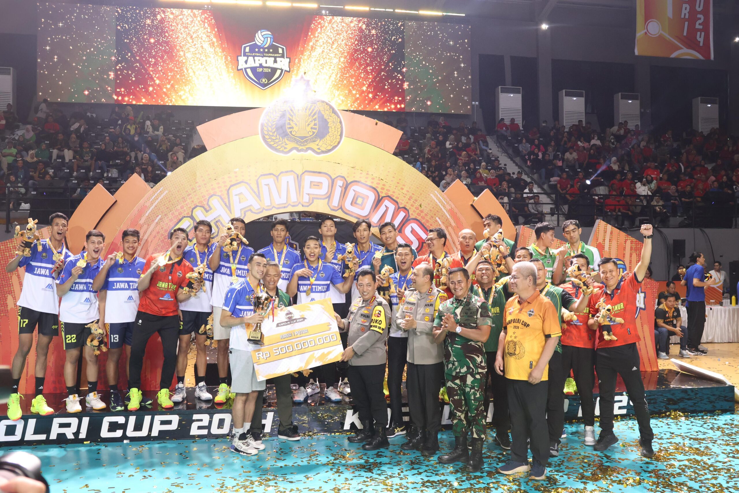 “Alhamdulillah hingga putaran terakhir pada malam ini yaitu Grand Final, telah terlaksana dengan baik, aman dan lancar, dan telah keluar pemenangnya yaitu untuk Tim Voli Putra juara 1 Jawa Timur, juara 2 Jawa Barat, juara 3 Kalimantan selatan dan juara 4 DKI Jakarta, sedangkan Tim Voli Putri Juara 1 Kalimantan barat, Juara 2 Jawa Timur, Juara 3 Sulawesi Tengah dan juara 4 Kalimantan Selatan”, kata Kabid Humas.