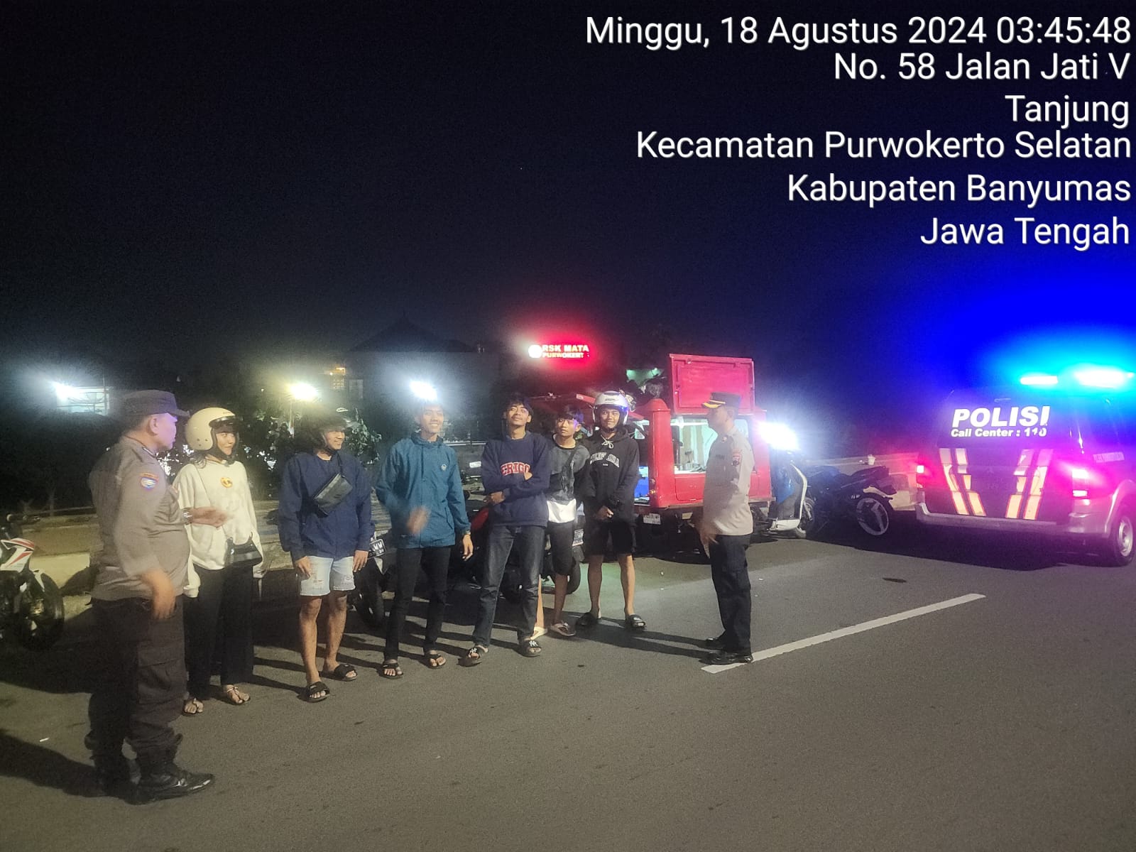 “Disamping patroli dialogis dan memberikan himbauan kamtibmas di wilayah Polsek Purwokerto Selatan pada umumnya, patroli dini hari ini lebih kami fokuskan di sekitar jalur rawan balap liar dan tempat nongkrong yakni Jalan Bung Karno, Jalan Gerilya Timur dan Komplek SPBU Karangbawang”, ujar Kapolresta Banyumas Kombes Pol Dr. Ari Wibowo, S.I.K., M.H., melalui Kapolsek Purwokerto Selatan Kompol Puji Nurochman, S.H., M.H.