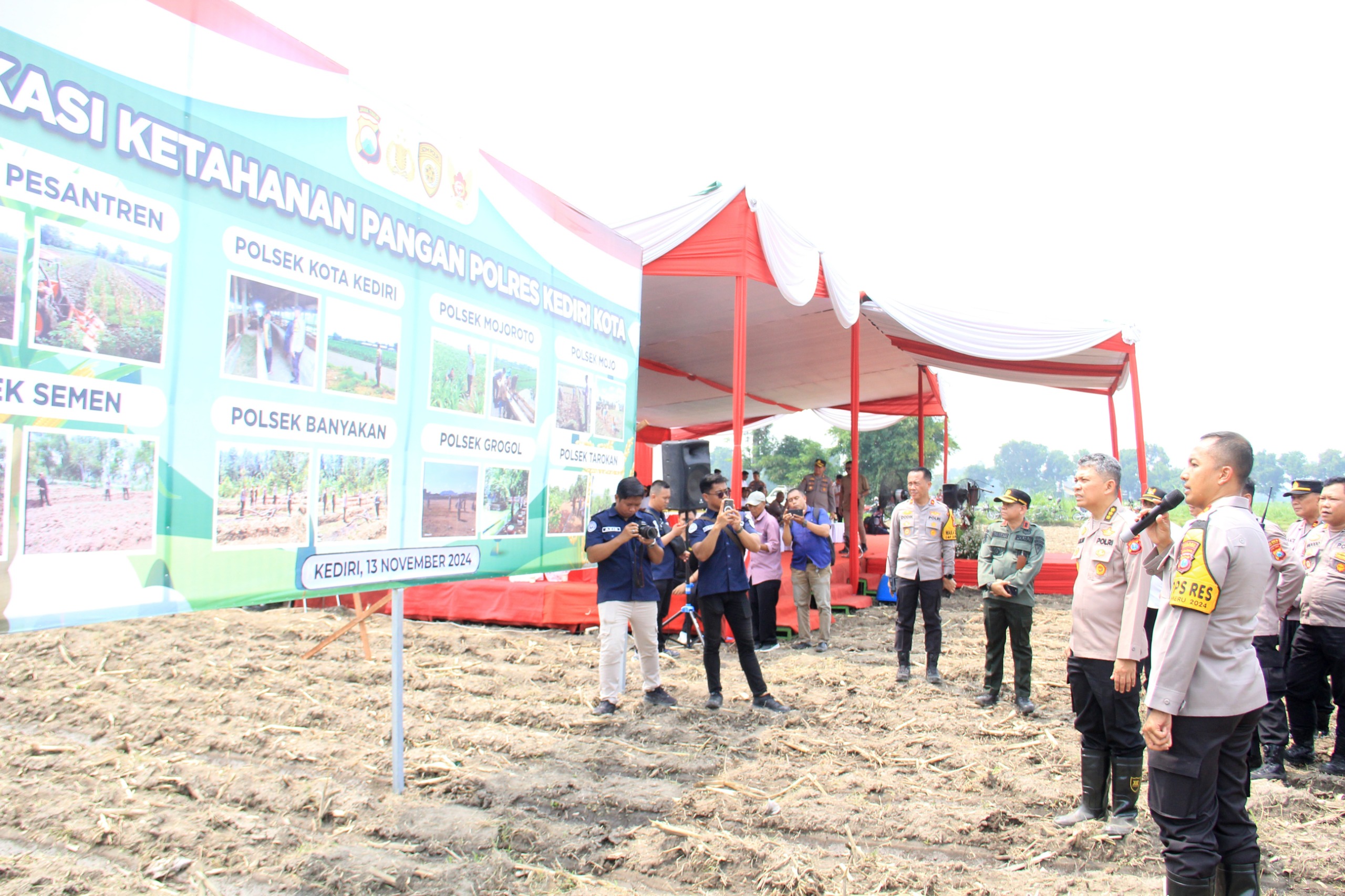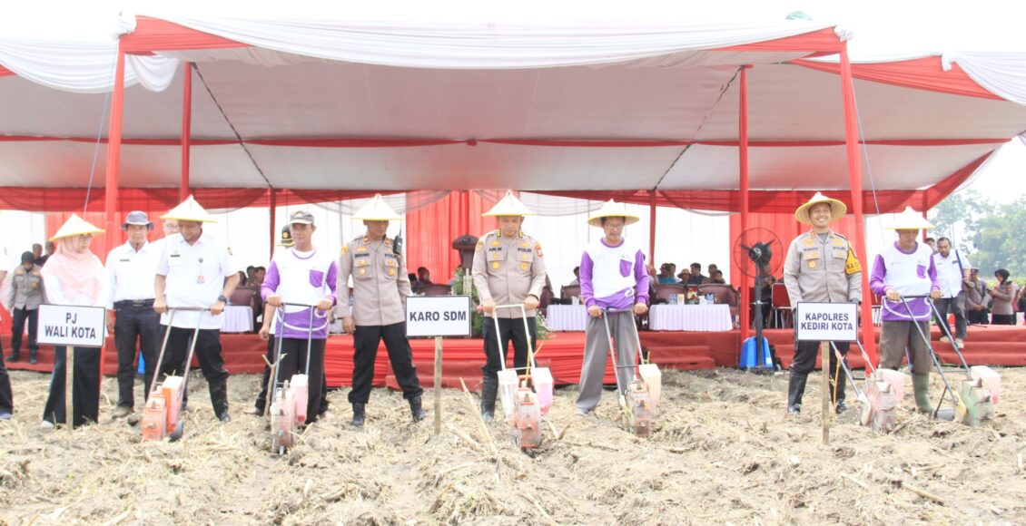 Kombes Pol Ari Wibowo menuturkan penanaman bibit jagung di Kel Ketami Kec Pesantren Kota Kediri ini untuk mendukung program Asta Cita Presiden RI terkait ketahanan pangan