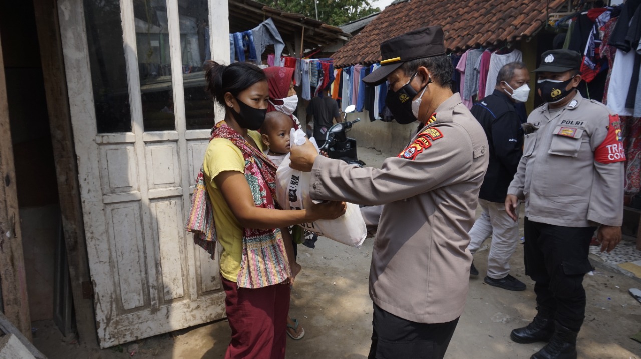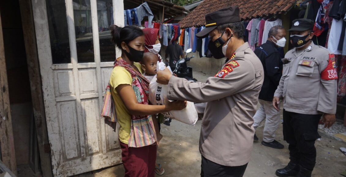 Cilegon – Kapolres Cilegon AKBP SIGIT HARYONO S.I.k,S.H. memerintahkan Kasat Binmas Polres Cilegon AKP HADI SUBENO, S.H., M.Si untuk memberikan pendistribusian bantuan sosial berupa sembako dan bagi masker kepada warga yang terdampak dengan Covid 19
