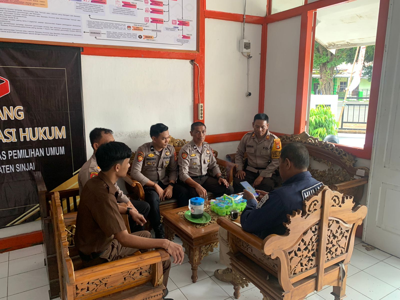Kedatangan Kaset Ops bersama rombongan di kantor Bawaslu guna memastikan pelaksanaan pengamanan berjalan dengan baik dan situasi kamtibmas di wilayah Kabupaten Sinjai aman dan kondusif, khususnya pada kantor Bawaslu.