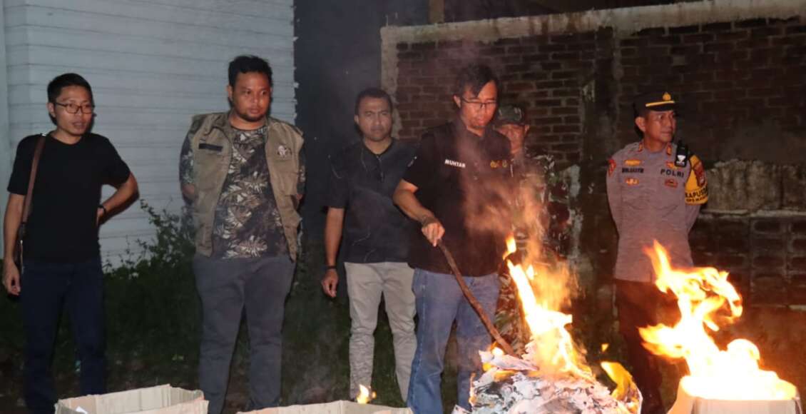 Kasubagdalops Polres Gowa Hadiri Pemusnahan Kertas Suara Sisa dan Rusak